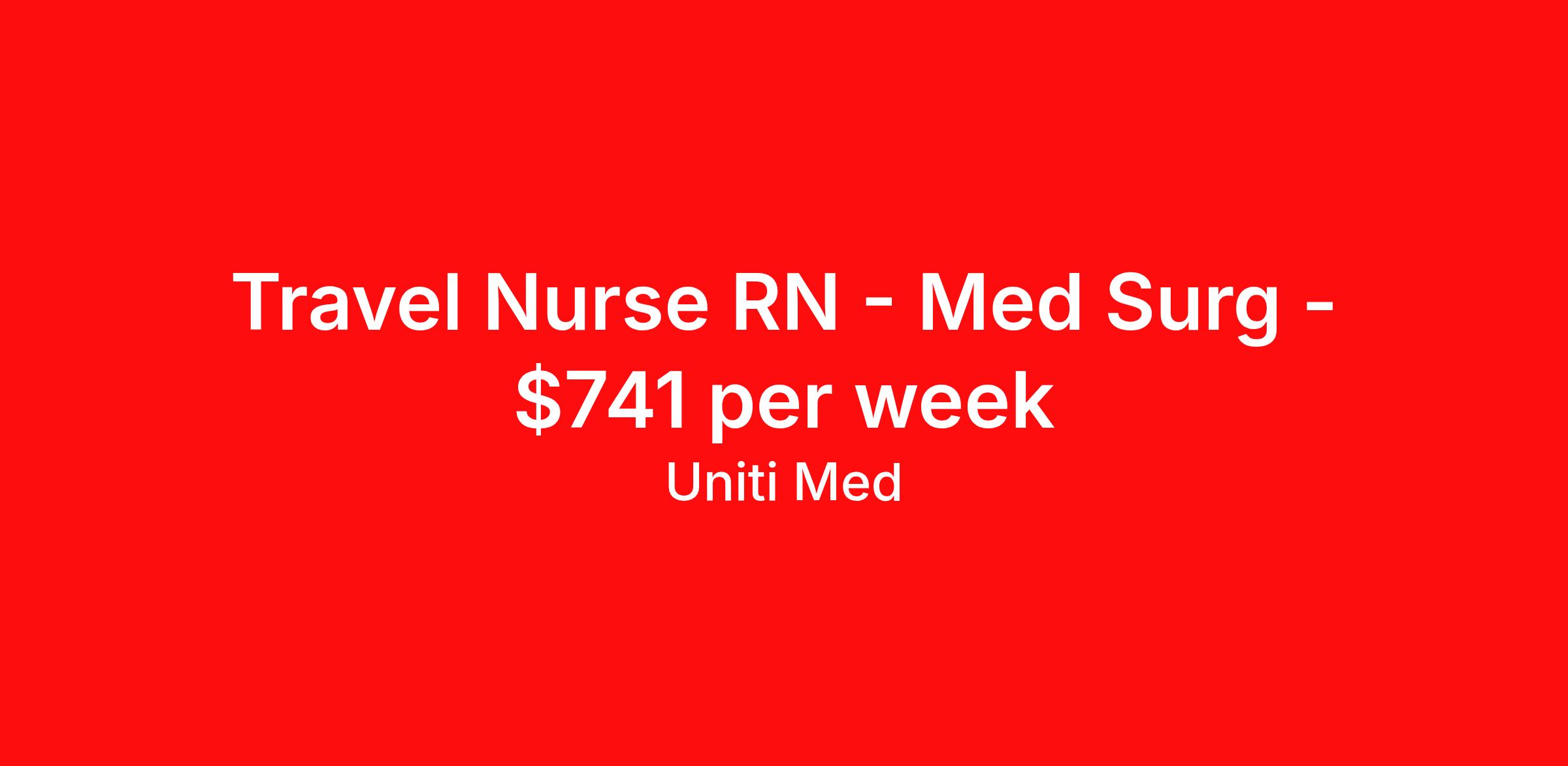 Uniti Med is seeking a travel nurse RN Med Surg for a travel nursing job in Dayton, Ohio. Job Description & Requirements Specialty: Med Surg Discipline: RN Start Date: 04/16/2026 Duration: 2 weeks 36 hours per week Shift: 12 hours, nights Employment Type: Travel Benefits: Day 1 Insurance Cigna medical, MetLife dental and vision insurance License reimbursement for new licenses needed for each assignment Discounts with hotels and rental cars A dedicated recruiter and support team that will help you every step of the way to sure you start on time and have an exceptional experience Referral bonus up to $700 About the Company: Finding the right role is about more than just matching skills to a job—it’s about aligning with your goals, values, and the way you want to work. As an award-winning talent partner, we support healthcare professionals through every step of that process, offering meaningful opportunities, clear guidance, and long-term partnership. From our first conversation to your first day on the job (and beyond!), we’re here to help you move forward with confidence. UnitiMed Job ID 788990. Pay package is based on 12 hour shifts and 36 hours per week (subject to confirmation) with tax-free stipend amount to be determined. Posted job title: Registered Nurse (RN) About Uniti Med Uniti Med meticulously matches your talents to our open needs to ensure the ultimate travel experience. Tell us where you want to go and let our experienced staff lead the way! Benefits Referral bonus Benefits start day 1 Employee assistance programs