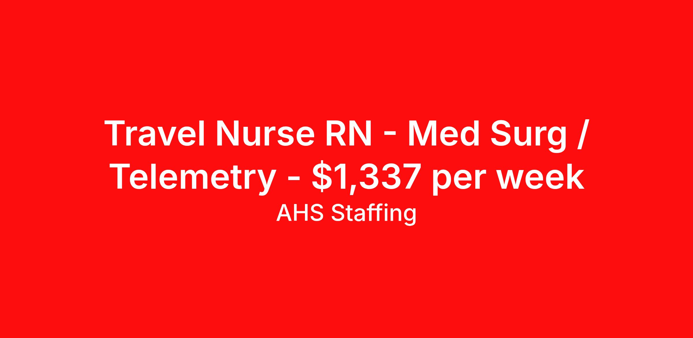 Travel Nurse RN - Med Surg / Telemetry - $1,337 per week