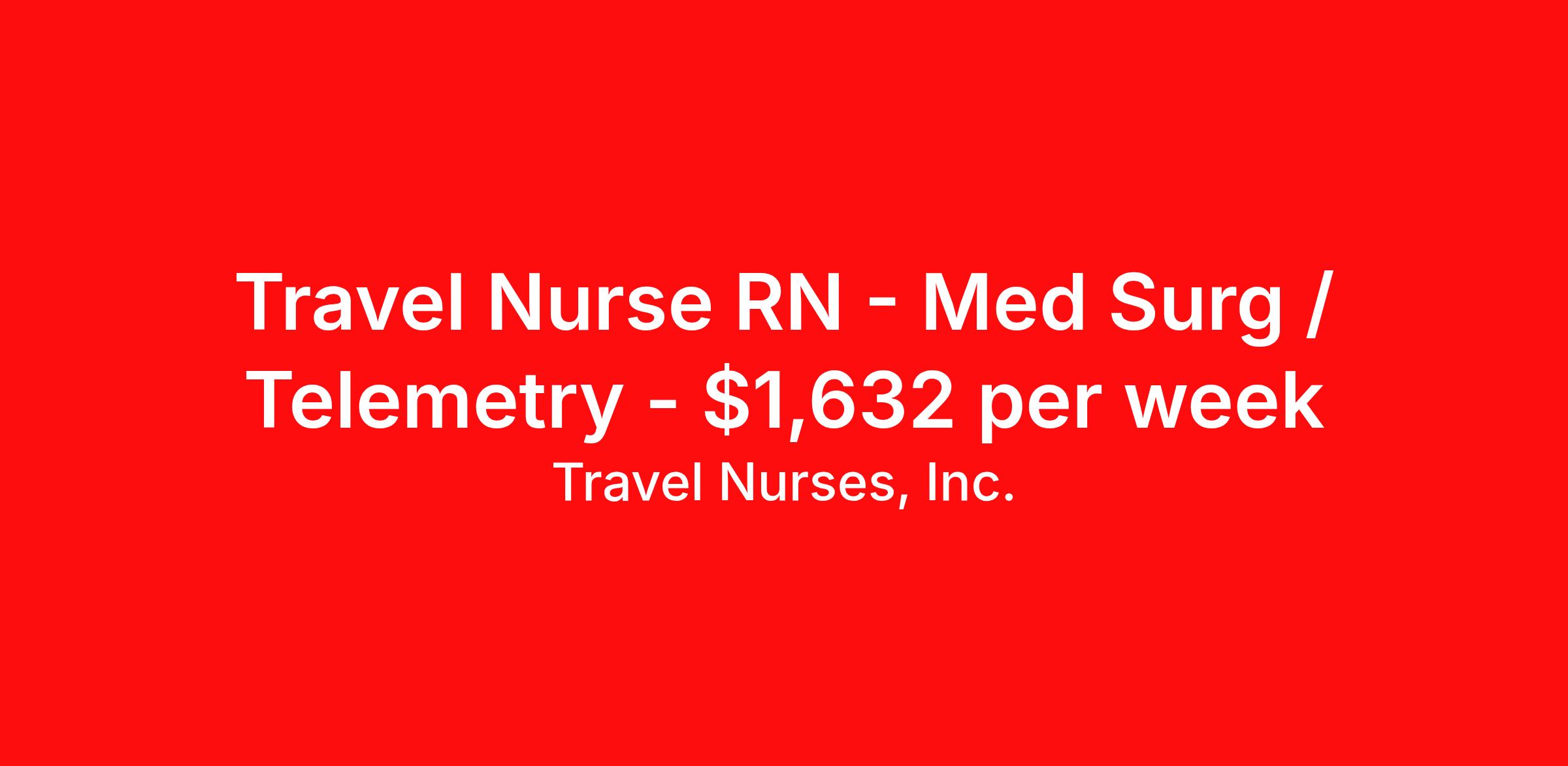 Travel Nurses, Inc. is seeking a travel nurse RN Med Surg / Telemetry for a travel nursing job in Dothan, Alabama. Job Description & Requirements Specialty: Med Surg / Telemetry Discipline: RN Start Date: 03/30/2026 Duration: 13 weeks 36 hours per week Shift: 12 hours Employment Type: Travel Travel Nurses, Inc. Job ID 308173. Pay package is based on 12 hour shifts and 36 hours per week (subject to confirmation) with tax-free stipend amount to be determined. Posted job title: MS/Tele Registered Nurse About Travel Nurses, Inc. Travel Nurses, Inc. is a leading healthcare staffing agency that provides healthcare professionals with opportunities to work across the country. Founded by nurses in 1988, TNI has more than 30 years of experience in the industry. The agency initially focused on staffing operating room settings in the MidSouth. However, this quickly evolved to encompass all nursing specialties and allied health fields nationwide. At the heart of our mission is a profound respect for nurses, whom we consider the cornerstone of healthcare. This acknowledgment extends beyond the nursing profession alone. Travel Nurses, Inc. now proudly embraces a wide array of healthcare professionals, recognizing their crucial roles in our collective mission. Travel Nurses, Inc. is dedicated to providing comprehensive support and opportunities that will help facilitate complete career mobility in the healthcare field. Our commitment to transparency ensures that all professionals, not just nurses, can confidently accept any assignment without financial uncertainties. We prioritize our professionals’ well-being with comprehensive benefits packages, including day-one healthcare coverage, competitive salaries, bonuses and incentives. This underscores our unwavering commitment to offering the best possible rewards and support for all the professionals we serve. Benefits Weekly pay Continuing Education 401k retirement plan Wellness and fitness programs Mileage reimbursement Referral bonus Employee assistance programs Medical benefits Dental benefits Vision benefits Benefits start day 1 License and certification reimbursement Life insurance Retention bonus