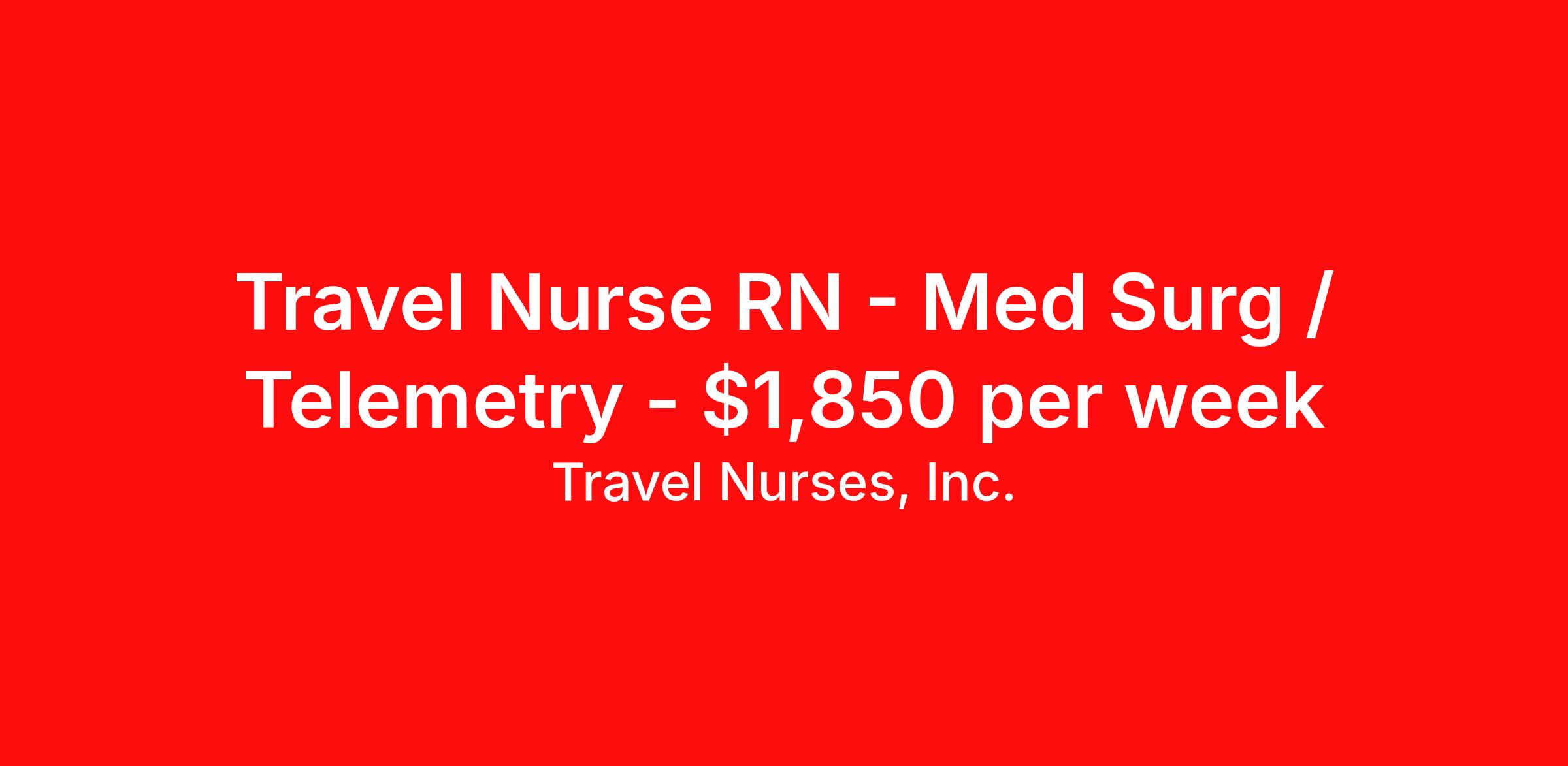 Travel Nurses, Inc. is seeking a travel nurse RN Med Surg / Telemetry for a travel nursing job in Leonardtown, Maryland. Job Description & Requirements Specialty: Med Surg / Telemetry Discipline: RN Start Date: ASAP Duration: 13 weeks 36 hours per week Shift: 12 hours Employment Type: Travel Travel Nurses, Inc. Job ID 302013. Pay package is based on 12 hour shifts and 36 hours per week (subject to confirmation) with tax-free stipend amount to be determined. Posted job title: MS/Tele Registered Nurse About Travel Nurses, Inc. Travel Nurses, Inc. is a leading healthcare staffing agency that provides healthcare professionals with opportunities to work across the country. Founded by nurses in 1988, TNI has more than 30 years of experience in the industry. The agency initially focused on staffing operating room settings in the MidSouth. However, this quickly evolved to encompass all nursing specialties and allied health fields nationwide. At the heart of our mission is a profound respect for nurses, whom we consider the cornerstone of healthcare. This acknowledgment extends beyond the nursing profession alone. Travel Nurses, Inc. now proudly embraces a wide array of healthcare professionals, recognizing their crucial roles in our collective mission. Travel Nurses, Inc. is dedicated to providing comprehensive support and opportunities that will help facilitate complete career mobility in the healthcare field. Our commitment to transparency ensures that all professionals, not just nurses, can confidently accept any assignment without financial uncertainties. We prioritize our professionals’ well-being with comprehensive benefits packages, including day-one healthcare coverage, competitive salaries, bonuses and incentives. This underscores our unwavering commitment to offering the best possible rewards and support for all the professionals we serve. Benefits Weekly pay Continuing Education 401k retirement plan Wellness and fitness programs Mileage reimbursement Referral bonus Employee assistance programs Medical benefits Dental benefits Vision benefits Benefits start day 1 License and certification reimbursement Life insurance Retention bonus