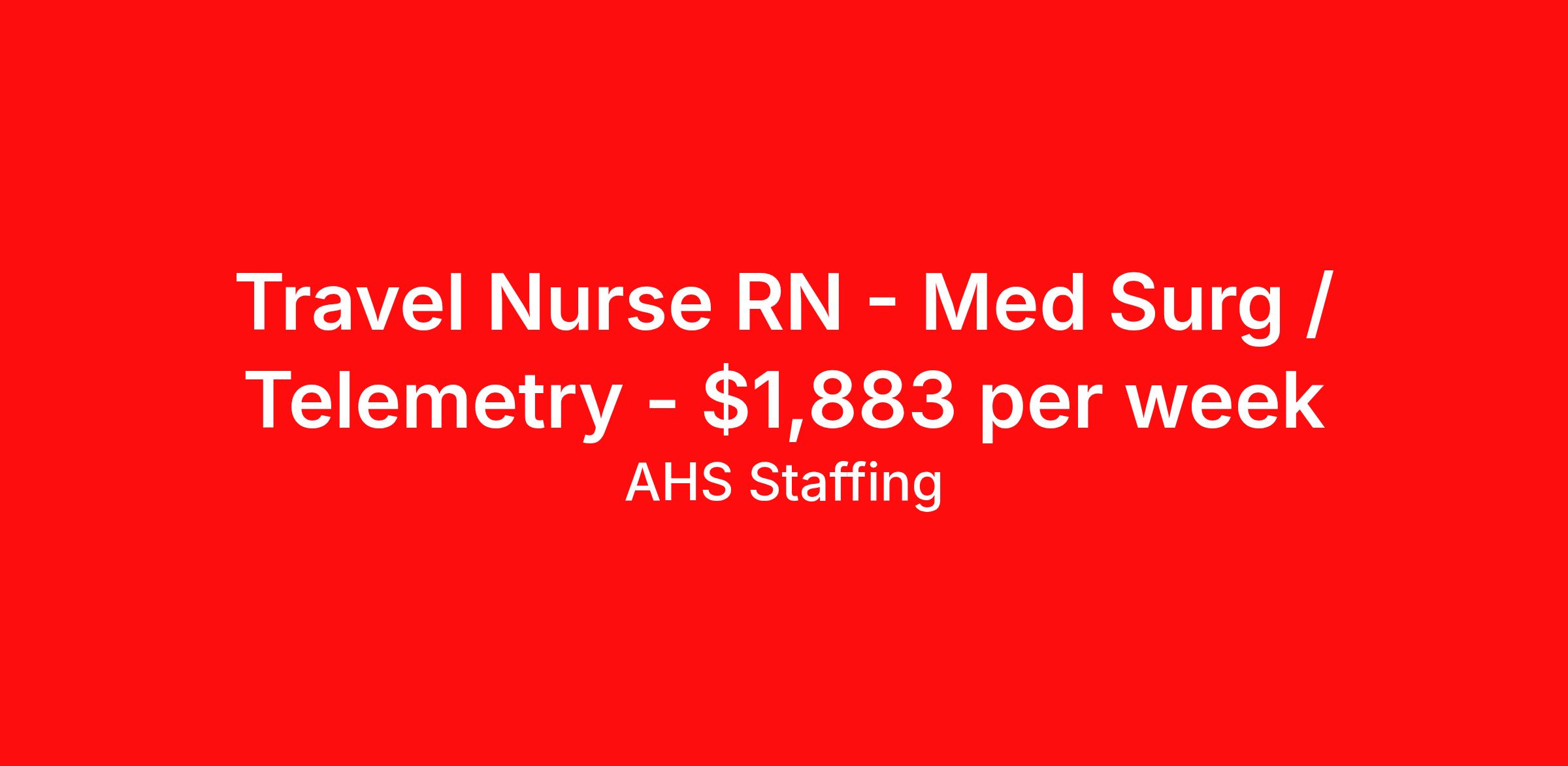 Travel Nurse RN - Med Surg / Telemetry - $1,883 per week