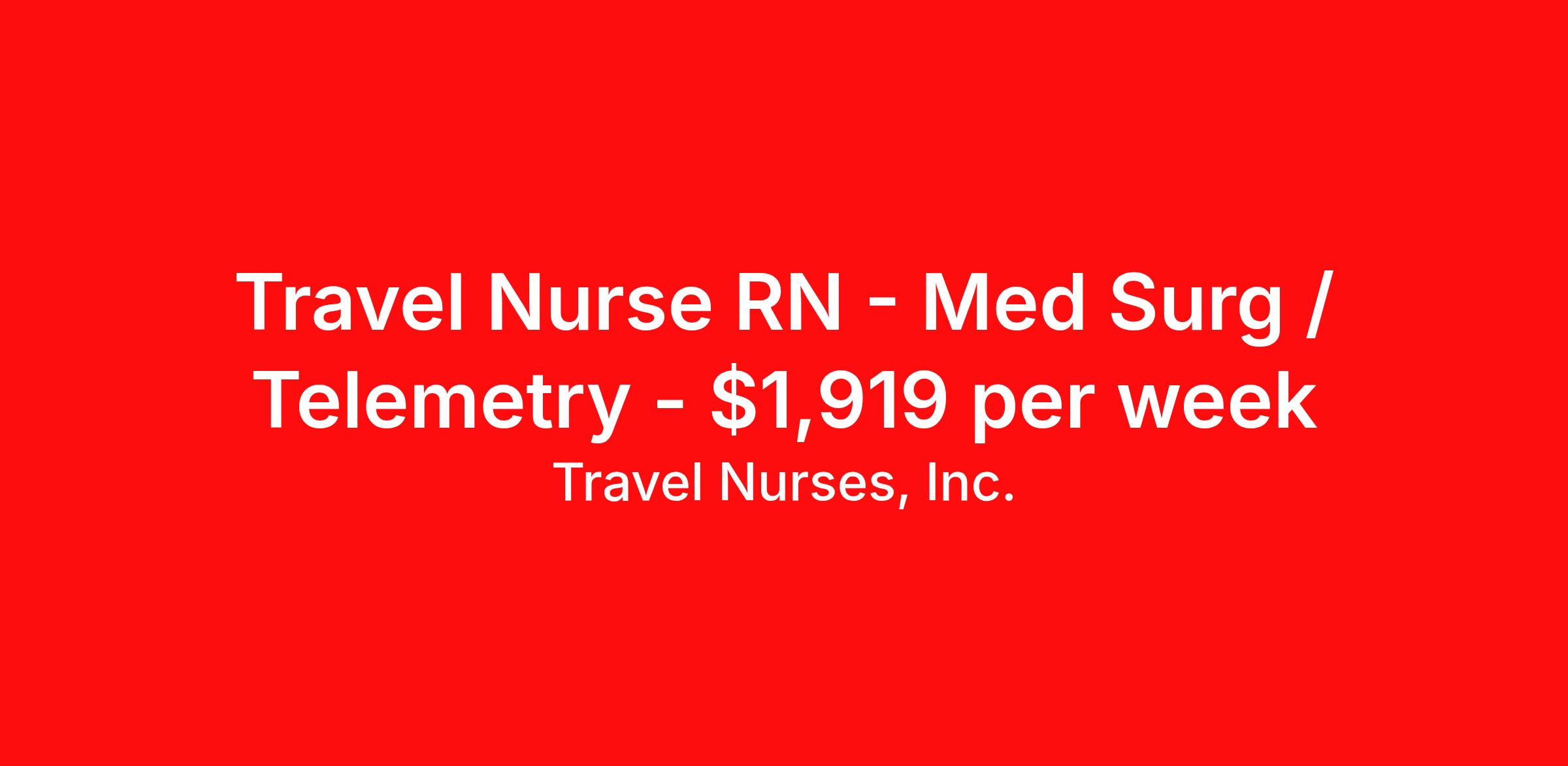 Travel Nurses, Inc. is seeking a travel nurse RN Med Surg / Telemetry for a travel nursing job in Lafayette, Louisiana. Job Description & Requirements Specialty: Med Surg / Telemetry Discipline: RN Start Date: 03/30/2026 Duration: 13 weeks 36 hours per week Shift: 12 hours Employment Type: Travel Travel Nurses, Inc. Job ID 297411. Pay package is based on 12 hour shifts and 36 hours per week (subject to confirmation) with tax-free stipend amount to be determined. Posted job title: MS/Tele Registered Nurse About Travel Nurses, Inc. Travel Nurses, Inc. is a leading healthcare staffing agency that provides healthcare professionals with opportunities to work across the country. Founded by nurses in 1988, TNI has more than 30 years of experience in the industry. The agency initially focused on staffing operating room settings in the MidSouth. However, this quickly evolved to encompass all nursing specialties and allied health fields nationwide. At the heart of our mission is a profound respect for nurses, whom we consider the cornerstone of healthcare. This acknowledgment extends beyond the nursing profession alone. Travel Nurses, Inc. now proudly embraces a wide array of healthcare professionals, recognizing their crucial roles in our collective mission. Travel Nurses, Inc. is dedicated to providing comprehensive support and opportunities that will help facilitate complete career mobility in the healthcare field. Our commitment to transparency ensures that all professionals, not just nurses, can confidently accept any assignment without financial uncertainties. We prioritize our professionals’ well-being with comprehensive benefits packages, including day-one healthcare coverage, competitive salaries, bonuses and incentives. This underscores our unwavering commitment to offering the best possible rewards and support for all the professionals we serve. Benefits Weekly pay Continuing Education 401k retirement plan Wellness and fitness programs Mileage reimbursement Referral bonus Employee assistance programs Medical benefits Dental benefits Vision benefits Benefits start day 1 License and certification reimbursement Life insurance Retention bonus