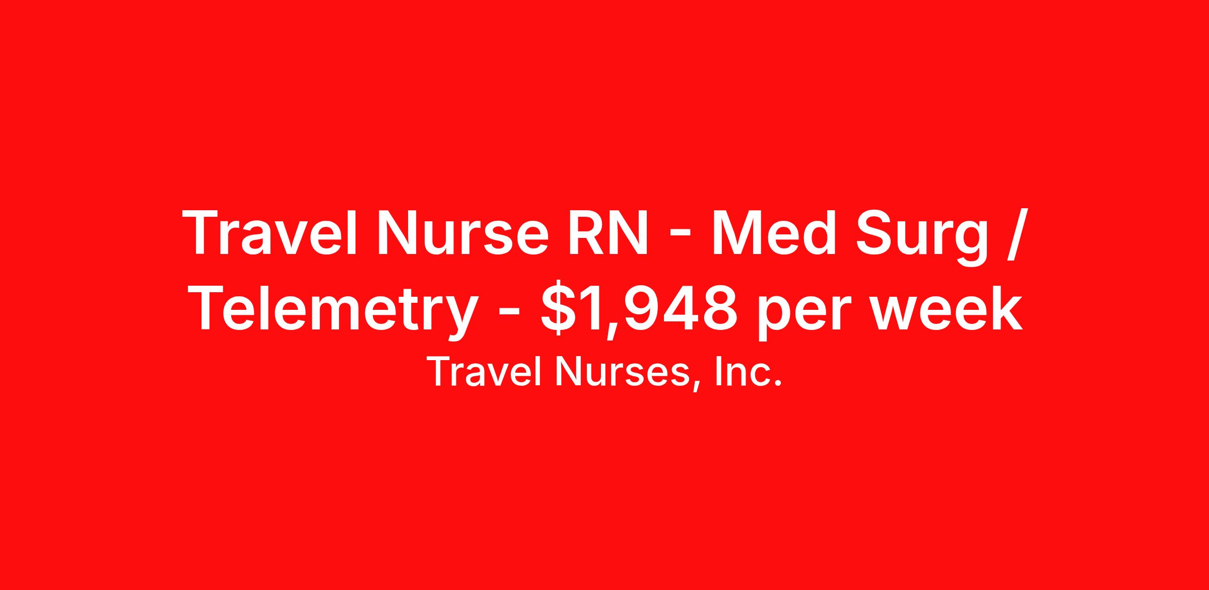 Travel Nurses, Inc. is seeking a travel nurse RN Med Surg / Telemetry for a travel nursing job in Tucson, Arizona. Job Description & Requirements Specialty: Med Surg / Telemetry Discipline: RN Start Date: 03/30/2026 Duration: 13 weeks 40 hours per week Shift: 8 hours Employment Type: Travel Travel Nurses, Inc. Job ID 309508. Pay package is based on 8 hour shifts and 40 hours per week (subject to confirmation) with tax-free stipend amount to be determined. Posted job title: *CHS Travel: FP - Registered Nurse (RN) / MS / Telemetry (Tele) - Nights About Travel Nurses, Inc. Travel Nurses, Inc. is a leading healthcare staffing agency that provides healthcare professionals with opportunities to work across the country. Founded by nurses in 1988, TNI has more than 30 years of experience in the industry. The agency initially focused on staffing operating room settings in the MidSouth. However, this quickly evolved to encompass all nursing specialties and allied health fields nationwide. At the heart of our mission is a profound respect for nurses, whom we consider the cornerstone of healthcare. This acknowledgment extends beyond the nursing profession alone. Travel Nurses, Inc. now proudly embraces a wide array of healthcare professionals, recognizing their crucial roles in our collective mission. Travel Nurses, Inc. is dedicated to providing comprehensive support and opportunities that will help facilitate complete career mobility in the healthcare field. Our commitment to transparency ensures that all professionals, not just nurses, can confidently accept any assignment without financial uncertainties. We prioritize our professionals’ well-being with comprehensive benefits packages, including day-one healthcare coverage, competitive salaries, bonuses and incentives. This underscores our unwavering commitment to offering the best possible rewards and support for all the professionals we serve. Benefits Weekly pay Continuing Education 401k retirement plan Wellness and fitness programs Mileage reimbursement Referral bonus Employee assistance programs Medical benefits Dental benefits Vision benefits Benefits start day 1 License and certification reimbursement Life insurance Retention bonus