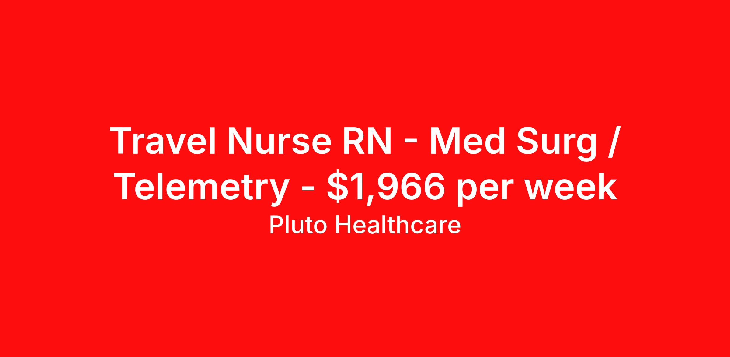 Pluto Healthcare is seeking a travel nurse RN Med Surg / Telemetry for a travel nursing job in Kalamazoo, Michigan. Job Description & Requirements Specialty: Med Surg / Telemetry Discipline: RN Duration: 13 weeks 36 hours per week Shift: 12 hours, days Employment Type: Travel BLS (AHA), ACLS (AHA), NIH, Michigan RN License 1 Year of MST experience BLS (AHA), ACLS (AHA), NIH, Michigan RN License 1 Year of MST experience Benefits Weekly pay Holiday Pay Guaranteed Hours Referral bonus Medical benefits Dental benefits Vision benefits Benefits start day 1