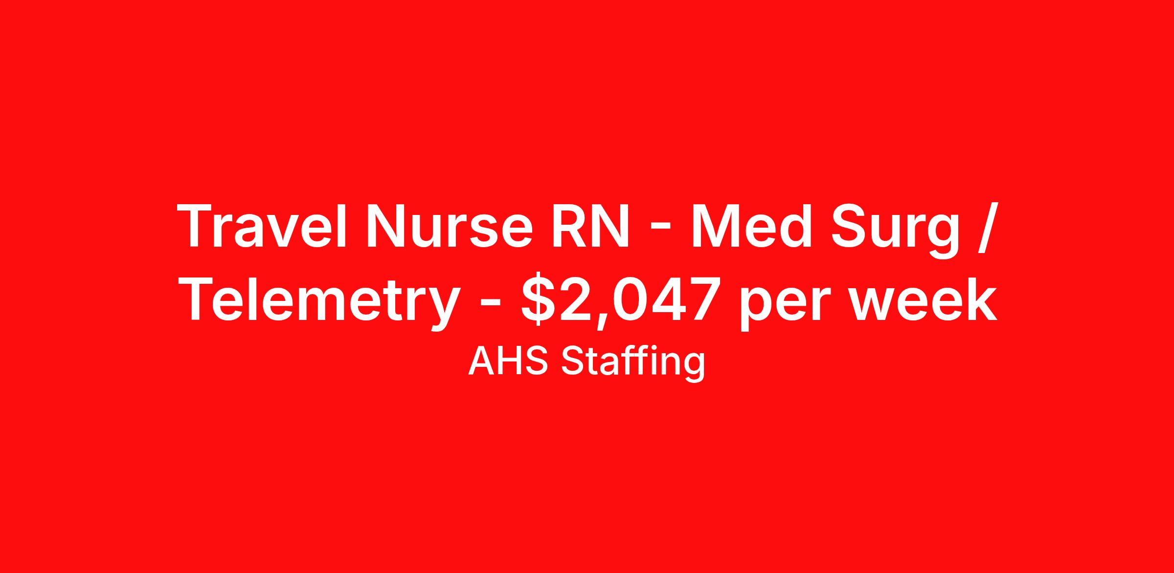 Travel Nurse RN - Med Surg / Telemetry - $2,047 per week