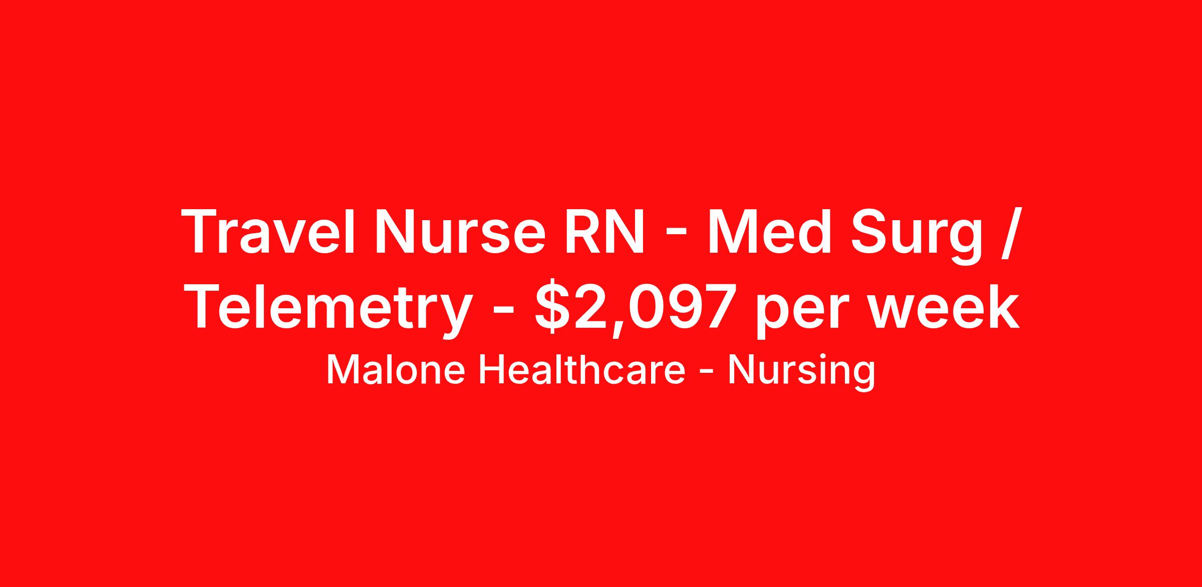 Malone Healthcare - Nursing is seeking a travel nurse RN Med Surg / Telemetry for a travel nursing job in Lee's Summit, Missouri. Job Description & Requirements Specialty: Med Surg / Telemetry Discipline: RN Start Date: 04/01/2026 Duration: 13 weeks 36 hours per week Shift: 12 hours, nights Employment Type: Travel About Malone Healthcare - Nursing With a commitment to providing a higher standard of service and experience in patient care, Malone Healthcare places expert nurses and allied health professionals in rewarding careers throughout the United States. As a leading healthcare staffing agency, Malone’s focus on compliance and integrity translates to a seamless experience for our team members and partner facilities. When you work with Malone Healthcare, you can rely on over 50 years of proven experience placing exceptional professionals in quality healthcare settings. Benefits Weekly pay Holiday Pay Guaranteed Hours Continuing Education 401k retirement plan Pet insurance Referral bonus Medical benefits Dental benefits Vision benefits License and certification reimbursement Life insurance
