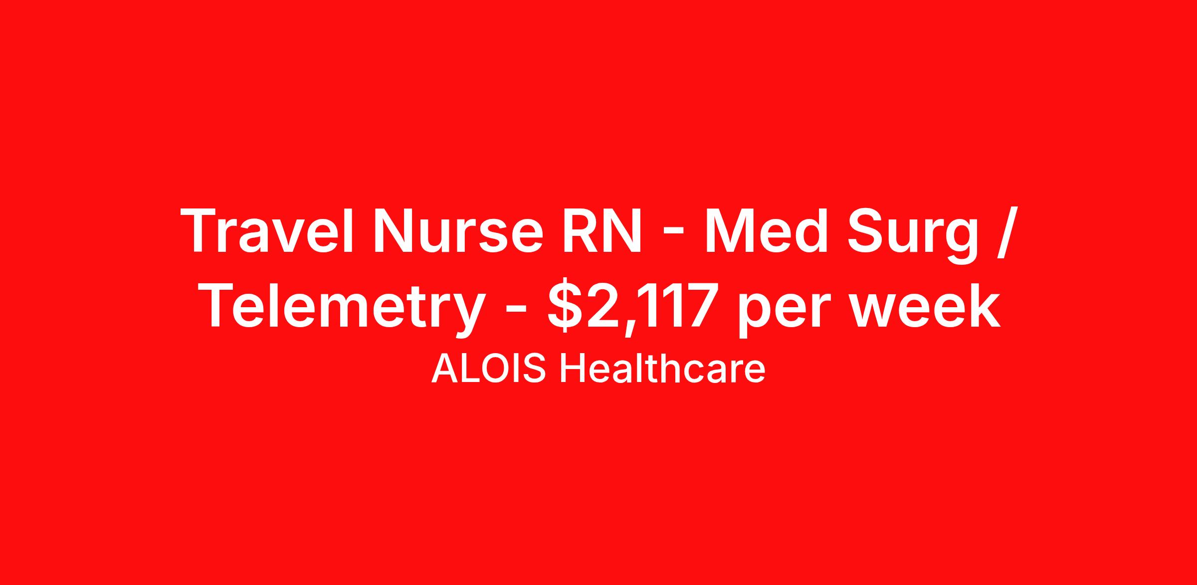 ALOIS Healthcare is seeking a travel nurse RN Med Surg / Telemetry for a travel nursing job in Lafayette, Indiana. Job Description & Requirements Specialty: Med Surg / Telemetry Discipline: RN Start Date: 05/19/2026 Duration: 13 weeks 36 hours per week Shift: 12 hours, nights Employment Type: Travel Monitoring, interpreting, and recording data from specialized medical technologies and equipment. Administering medication and performing treatment interventions in consultation with healthcare specialists. Maintaining and updating ward charts, patient files, and medical records. ALOIS Healthcare Job ID 18204677. Pay package is based on 12 hour shifts and 36.0 hours per week (subject to confirmation) with tax-free stipend amount to be determined. Posted job title: RN MS/TELE About ALOIS Healthcare Why ALOIS Healthcare? ALOIS means “brave warrior” and that’s what you are- Warrior in Scrubs! Just as you advocate for your patients, we will advocate for you. The pay you deserve. The support you need. We’re in your corner for every battle – because you shouldn’t settle for anything less when it comes to your career. We offer: · Industry-leading pay Generous cost of living and housing stipends · Opportunities for referral, sign-on, and extension bonuses · Weekly health insurance or health insurance Marketplace weekly bonus · Continuing education credits We’re proud to be recognized globally as a certified minority-owned staffing supplier. At ALOIS Healthcare: · Everyone Matters · We are Performance Driven · We are Open, Honest and Direct · We are Transparent · We are Inclusive · We Do the Right Thing We care about you - and your success is our success.
