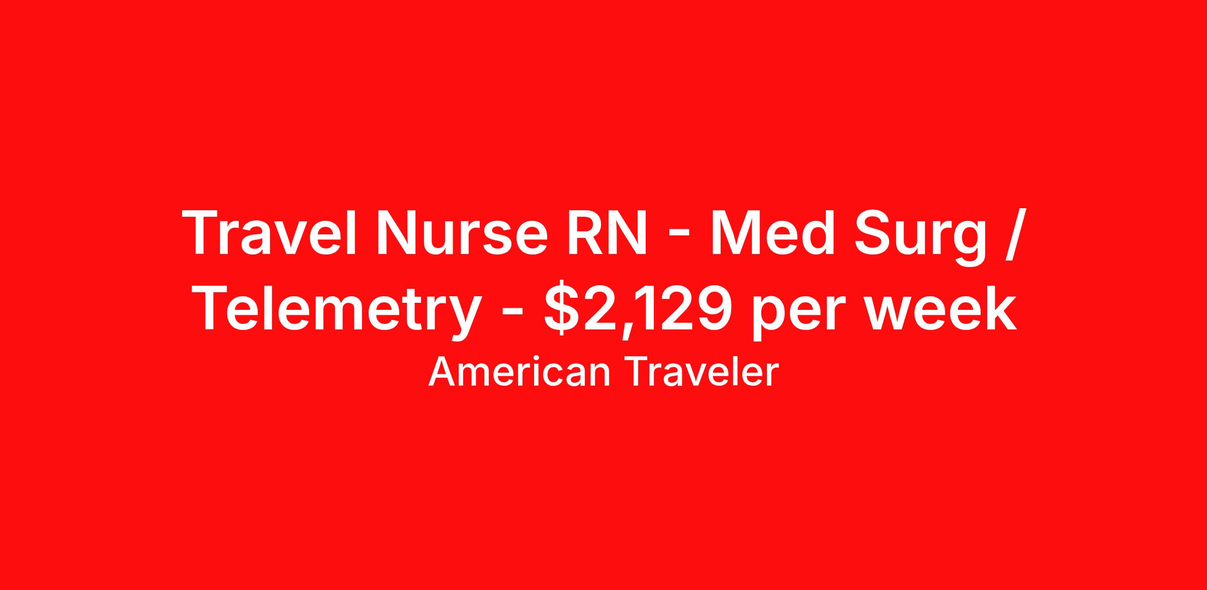 American Traveler is seeking a travel nurse RN Med Surg / Telemetry for a travel nursing job in Washington, District of Columbia. Job Description & Requirements Specialty: Med Surg / Telemetry Discipline: RN Start Date: 04/06/2026 Duration: 9 weeks 36 hours per week Shift: 12 hours, nights Employment Type: Travel Assignment Overview Shift: Nights, 3x12hrs Hours: 36 hrs/wk Start Date: Apr 6, 2026 Length: 9 weeks Openings: 2 Description American Traveler is seeking an experienced RN for a Medical/Surgical Telemetry position requiring at least 2 years of RN experience, Cerner proficiency, and an active DC RN license. Details Inpatient Medical/Surgical Telemetry unit in an acute care hospital setting Night shift, 3x12-hour shifts per week (36 hours/week) 9-week contract Nurse-to-patient ratio of 1:5-6 on a 16-bed unit Cerner EMR used; experience required Requirements Active DC RN license required; no pending licenses accepted Certifications required: BLS (AHA), ACLS (AHA), and NIH Stroke Scale (NIHSS) CPI certification required for this position Minimum 2 years of RN experience in a U.S. hospital required Minimum 1 year of Med/Tele acute care inpatient experience required Graduate of an accredited or NLN-approved RN program required; BSN highly desired Cerner EMR experience required Must successfully complete a telemetry rhythm interpretation test prior to start Two manager or supervisor references preferred, verifying experience within the previous 12 months, with at least one from the most recent employer Valid U.S. SSN and date of birth required for consideration Additional Information Provides patient-centered care including initial and ongoing assessments, review of systems, and age-appropriate interventions across the lifespan Documents admission assessments, nursing needs, and care plans in accordance with policy and procedures Must reside more than 50 miles from the facility to be eligible for this position; local candidates are not accepted All certifications must be AHA-issued American Traveler Job ID P-681148. Pay package is based on 12 hour shifts and 36 hours per week (subject to confirmation) with tax-free stipend amount to be determined. Posted job title: Travel RN - Med/Surg Tele About American Traveler With over 25 years of experience, American Traveler has established a reputation for outstanding customer service. Our team ensures a smooth, worry-free experience for those starting on or expanding their travel nursing and allied careers. With thousands of travel nursing and allied jobs nationwide, our attentive and approachable recruiters find positions that align perfectly with your career aspirations and personal requirements. American Traveler offers exceptional benefits, including premium medical, dental, vision and life insurance beginning day one of your assignment, generous 401(k) match, substantial housing stipends, and more. Additionally, with 24/7 support and access to our in-house clinicians, you are assured confidence and comfort throughout your assignment. With our team behind you, you can relax and enjoy a rewarding travel career.