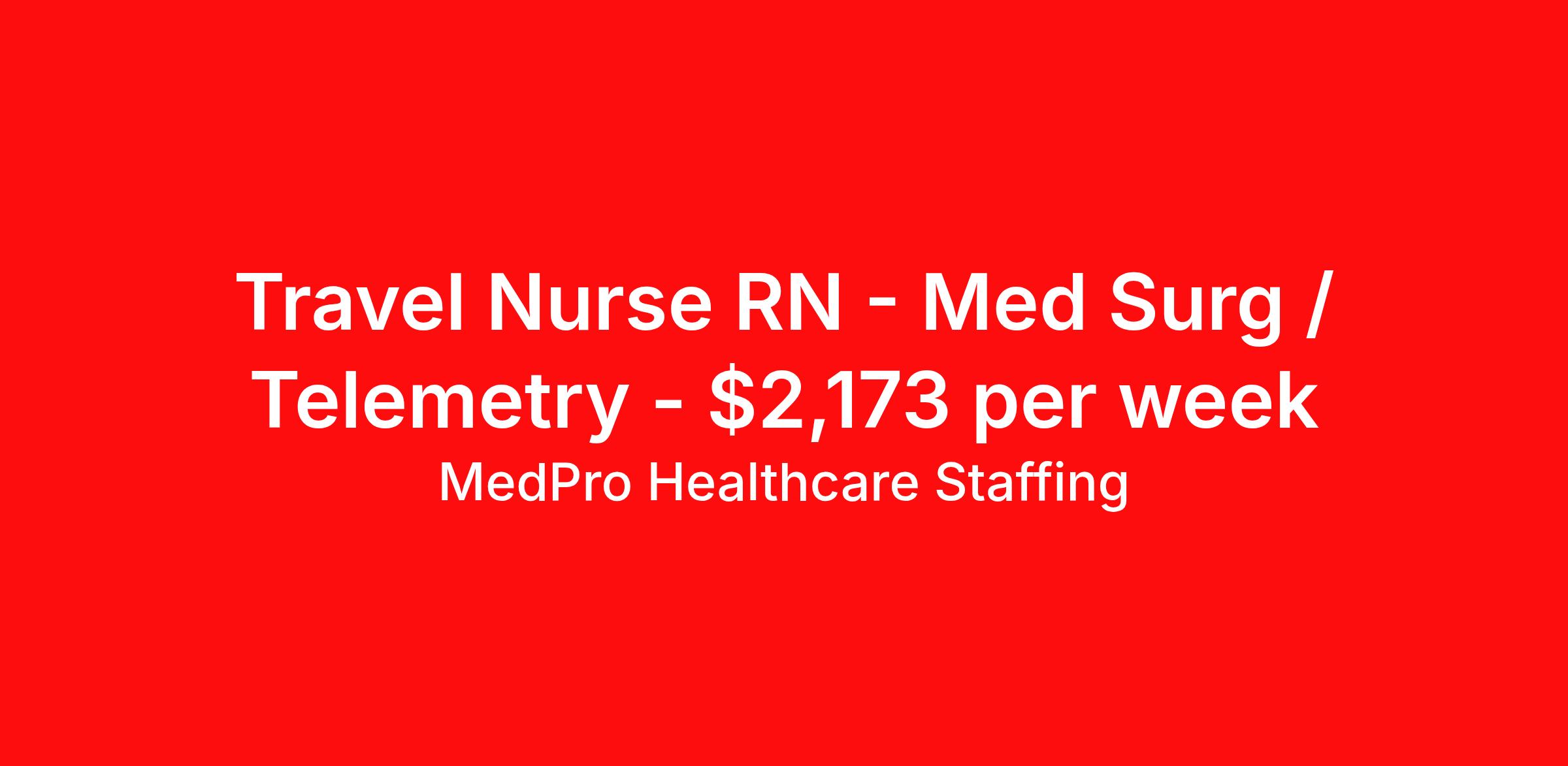 MedPro Healthcare Staffing is seeking a travel nurse RN Med Surg / Telemetry for a travel nursing job in Washington, District of Columbia. Job Description & Requirements Specialty: Med Surg / Telemetry Discipline: RN Start Date: 03/30/2026 Duration: 13 weeks 36 hours per week Shift: 12 hours, nights Employment Type: Travel MedPro Healthcare Staffing , a Joint Commission-certified staffing agency, is seeking a quality Med-Surg registered nurse (RN) for a travel assignment with one of our top healthcare clients. Requirements Active RN License Degree from accredited nursing program BLS Certifications Eighteen months of recent experience in an Acute Care Med/Surg setting Other requirements to be determined by our client facility Benefits Weekly pay and direct deposit Full coverage of all credentialing fees Private housing or housing allowance Group Health insurance for you and your family Company-paid life and disability insurance Travel reimbursement 401(k) matching Unlimited Referral Bonuses up to $1,000 Duties Responsibilities Med-Surg Nurses (RN) provide care for primarily adult patients before and after surgical procedures; they also attend to those who are being treated with pharmaceuticals to manage illness. Due to the broad range of medical conditions Med/Surg Nurses will encounter, they must be well-versed in a large variety of health conditions. Complete assignments made by physicians. Provide routine treatment and post-surgical care. Assess changes in patient's health status and perform various treatments. Administer medication. Meticulous documentation as to medication and treatment administration to ensure continuity of care between nursing staff, physicians and other treatment team members. About Agency MedPro Healthcare Staffing is a Joint Commission certified provider of contract staffing services. Since 1983, we have placed nursing and allied travelers in top healthcare facilities nationwide. Join us today for your very own MedPro Experience®. If qualified and interested, please call for immediate consideration. MedPro Staffing is an Equal Opportunity Employer. All applicants will be considered for employment without attention to race, color, religion, national origin, age, sex, disability, marital status or veteran status. Key Words: Registered Nurse, RN, Medical-Surgical, Travel Nurse, Contract Nurse, Agency Nurse, Agency RN, RN-MS, RN- Medical Surgical, Travel RN, Contract, Nursing, RN Med-Surg, Travel Nursing *Weekly payment estimates are intended for informational purposes only and include a gross estimate of hourly wages and reimbursements for meal, incidental, and housing expenses. Your recruiter will confirm your eligibility and provide additional details. MedPro Job ID a0Fcx00000CySSLEA3. Pay package is based on 12 hour shifts and 36 hours per week (subject to confirmation) with tax-free stipend amount to be determined. Posted job title: Med-Surg/Telemetry Registered Nurse Nursing: Med Surg/Tele. About MedPro Healthcare Staffing At MedPro Healthcare Staffing , we believe no one cares more for caregivers than we do. Our mission is simple: you focus on your patients, and we’ll take care of the rest. As a Joint Commission-certified leader in temporary and contract healthcare staffing since 1983, MedPro has proudly connected nursing and allied travelers with top healthcare facilities across the nation. With thousands of job opportunities available nationwide, we make it easy to find assignments that align with your goals and lifestyle. Our on-staff clinical support team—alongside a compassionate group of experienced recruiters—provides hands-on guidance every step of the way. From Day 1 medical benefits and a 401(k) plan to personalized career support, we’re committed to ensuring every professional we serve feels valued, cared for, and empowered to succeed. Guided by a CEO who is a Registered Nurse, MedPro is built on a foundation of clinical insight and genuine compassion for the caregiving community. Through The MedPro Experience® , we deliver travel assignments that are rewarding, memorable, and designed to help you DREAM big, EXPLORE often, and ACHIEVE greatness. Benefits Day 1 medical, dental, and vision benefits for you and your family Weekly pay and direct deposit Unlimited Referral Bonuses starting at $500 On Staff Clinical Support Team Access to nationwide travel assignments MPX Mobile app -24/7 real-time access to jobs, credentials, assignment details, and more Full coverage of all credentialing fees Private housing or housing allowance Tax Free Per Diems, Housing Stipends and Travel Reimbursements Company-paid life and disability insurance Travel reimbursement 401(k) matching Benefits Weekly pay Referral bonus Employee assistance programs