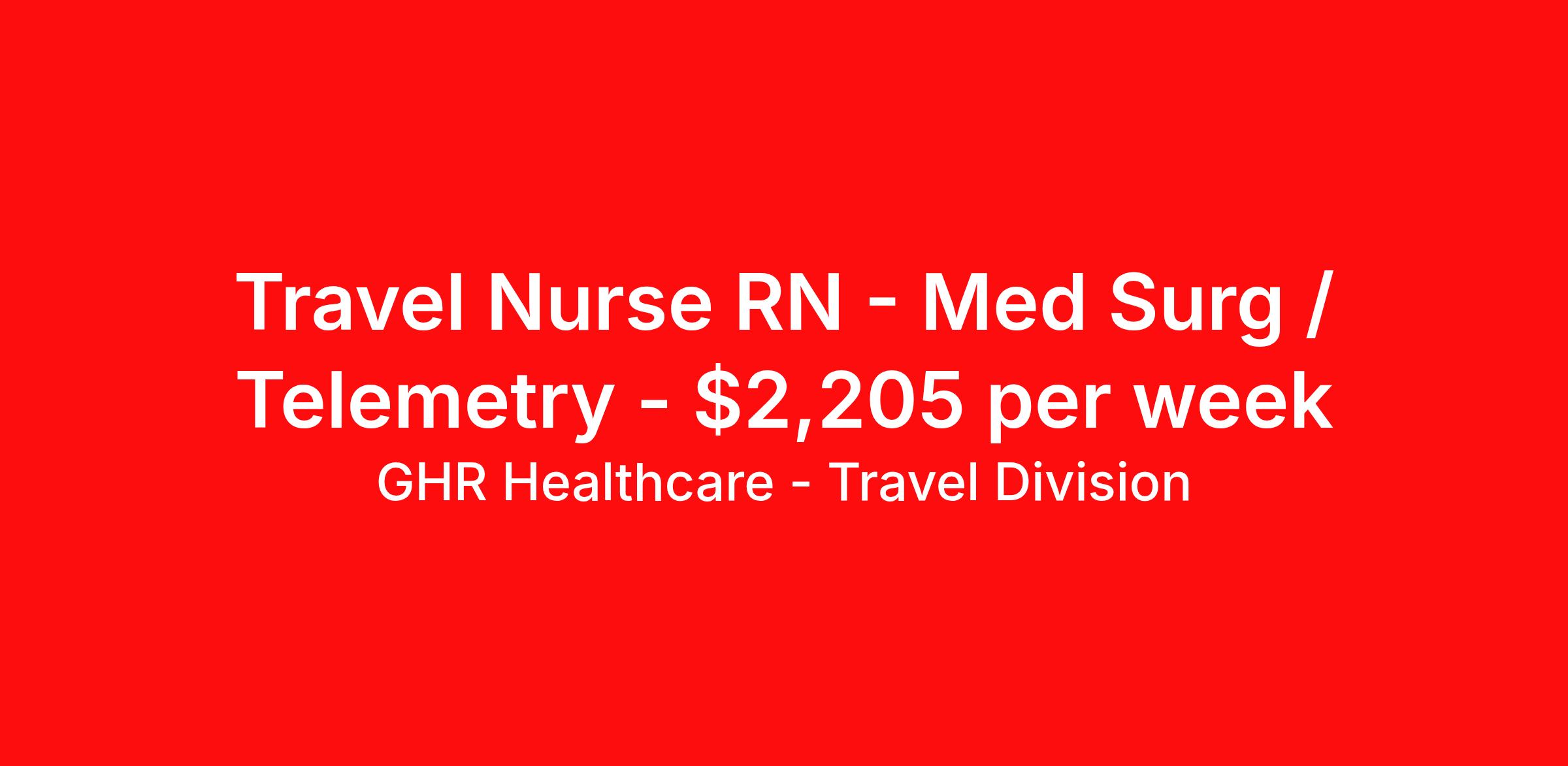 GHR Healthcare - Travel Division is seeking a travel nurse RN Med Surg / Telemetry for a travel nursing job in Allentown, Pennsylvania. Job Description & Requirements Specialty: Med Surg / Telemetry Discipline: RN Start Date: 04/13/2026 Duration: 13 weeks 36 hours per week Shift: 12 hours, nights Employment Type: Travel About GHR Healthcare - Travel Division For over 30 years, GHR Healthcare has been the bridge between healthcare professionals and the facilities that need them nationwide. We're committed to uncovering your ideal fit, supported by GHR's dedication to competitive compensation, transparent communication, and a devoted team that genuinely cares about your career journey. You can trust us to stand by your side as your advocate, confidante, and partner in advancing your career. At GHR, care and consideration are at the heart of everything we do. Visit ghrhealthcare.com to learn more.