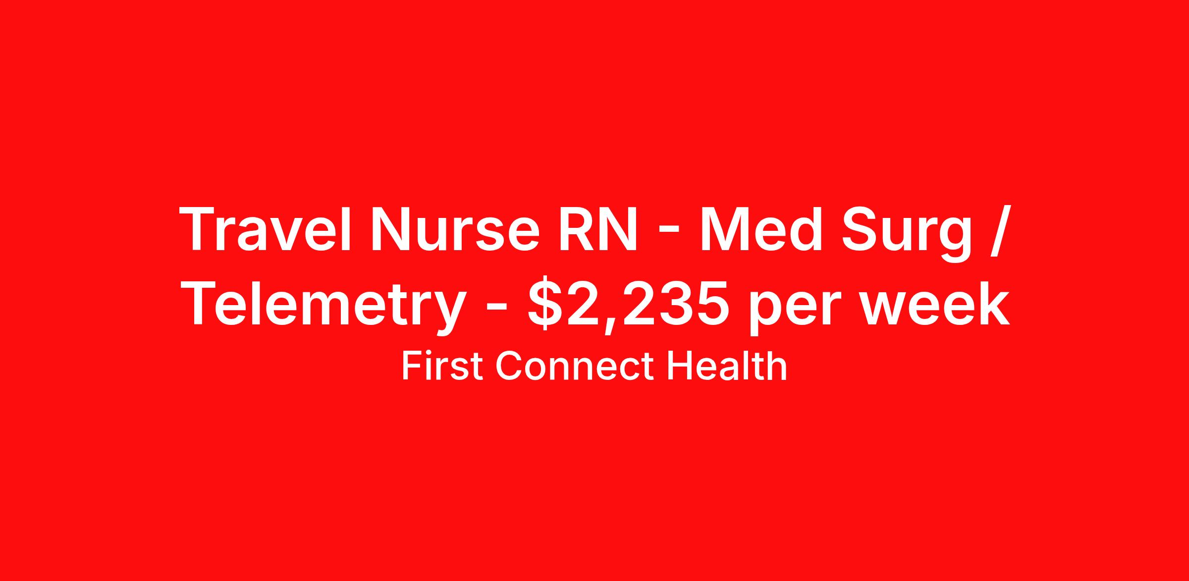 First Connect Health is seeking a travel nurse RN Med Surg / Telemetry for a travel nursing job in Des Moines, Iowa. Job Description & Requirements Specialty: Med Surg / Telemetry Discipline: RN Start Date: 04/13/2026 Duration: 11 weeks 36 hours per week Shift: 12 hours, nights Employment Type: Travel Position: Med Surg/Telemetry RN Requirements: • 2 years of experience • 24 months of Med Surg experience in a hospital/medical center setting • Experience in neurology/neurosurgery (including craniectomy care) • Ortho/orthopedic care experience • EPIC EMR experience • Night Shift (3×12-hour shifts, 7:00 PM – 7:00 AM) • 36 guaranteed hours per week • BLS • Active IA or Compact State RN License About First Connect Health At First Connect Health , we take pride in being a Joint Commission–certified healthcare staffing agency , headquartered in Newark, New Jersey. This prestigious certification is more than just a seal — it's a reflection of our commitment to excellence, safety, and quality in everything we do. By meeting the rigorous standards set by The Joint Commission, one of the most respected accrediting bodies in healthcare, we've demonstrated that our processes, compliance, and patient care standards are aligned with the highest levels of quality in the industry. But our dedication goes beyond certifications. Nurses choose First Connect Health because: ✅ Trust and Transparency: We foster honest communication, timely updates, and full transparency throughout your placement journey. ✅ Best Pay & Benefits: We offer industry-leading compensation packages, along with benefits that support your career goals. ✅ Flexibility & Choice: Whether you're seeking short-term assignments, long-term contracts, or local opportunities, we provide the flexibility to suit your preferences. ✅ Personalized Support: Our recruiters take the time to understand your needs, guiding you with care, respect, and responsiveness at every step. When you work with First Connect Health, you're not just another number — you're a valued professional. Join a team that’s focused on your success, your well-being, and your future in healthcare. Benefits Medical benefits Sick pay 401k retirement plan Weekly pay Referral bonus