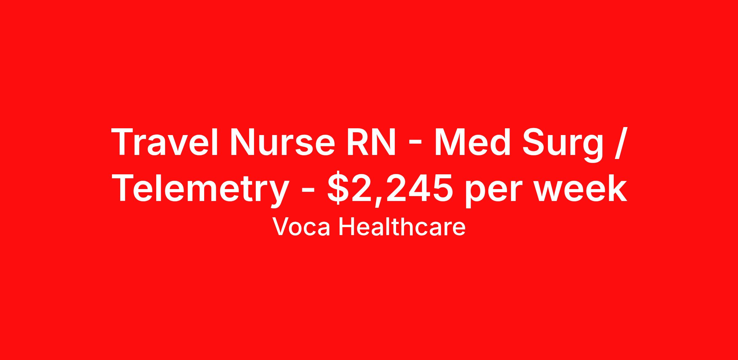 Voca Healthcare is seeking a travel nurse RN Med Surg / Telemetry for a travel nursing job in Waterloo, Iowa. Job Description & Requirements Specialty: Med Surg / Telemetry Discipline: RN Start Date: 04/06/2026 Duration: 13 weeks 36 hours per week Shift: 12 hours, days Employment Type: Travel Days: 3x12 hr shifts No Call, Every other weekend including holiday rotation Quickly interviewing viable candidates: Phone call/text from a 405 area code Radius rule: min. 50 miles, no locals EMR: EPIC UNIT Info Ratios: 1:6 Bed Size: 130 Tele reads Drips: heparin, insulin, lasix, amiodarone, diltizem, digoxin FLOAT: may float to BH, ED, ICU and some post-procedural areas MUST complete Basic Dysrhythmia Assessment; passing score of 80% during onboarding. 24 months of experience in Med Surg, Tele, Med/Tele [required] 1st time traveler accepted with at least 2 years of Nursing experience Drips on Unit: heparin, insulin, lasix, amiodarone, diltizem, digoxin [required] MUST be able to comfortably/confidently read EKG/ECG including all Tele related duties/responsibilities (rhythm strips, dysrhythmia reads) EPIC experience [required] De-Escalation Certificate (SAMA, MAB, MOAB, CPI) [document] [highly preferred] can be obtained during onboarding NIH Stroke Scale certificate - [document] [highly preferred] can be obtained during onboarding Certifications: ACLS (AHA),BLS,NIHSS,MOAB About Voca Healthcare As a Voca Traveler, you will gain new clinical skills, visit amazing places and meet awesome healthcare professionals. As a travel health professional, your experience and dedication to patient care is in high demand throughout the United States. Whether you are a veteran traveler looking for your next opportunity, or you are looking to travel for the first time, Voca is here to support you. Voca’s experienced and dedicated travel team works in concert with you every step of the way. Our long-standing partnerships with some of the most respected and recognized healthcare organizations in the country allow us to identify career opportunities to help you increase your knowledge and experience while working with some of the best physicians and healthcare professionals in the world. At Voca, we strongly believe a better career results in a happier you. We are here to help you find a position that is professionally and personally rewarding. Benefits Holiday Pay 401k retirement plan Medical benefits Dental benefits Vision benefits Guaranteed Hours