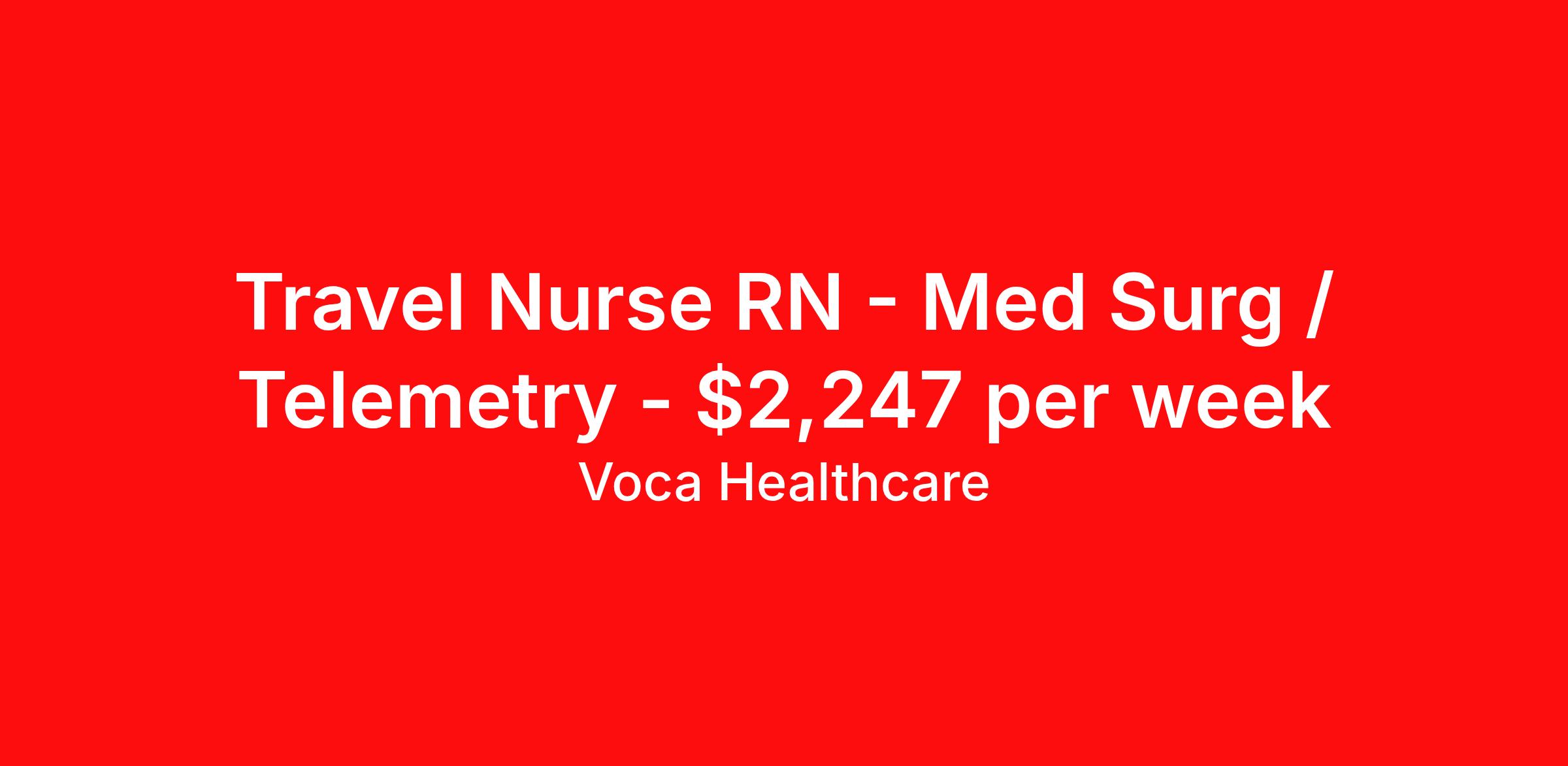Voca Healthcare is seeking a travel nurse RN Med Surg / Telemetry for a travel nursing job in Waterloo, Iowa. Job Description & Requirements Specialty: Med Surg / Telemetry Discipline: RN Start Date: 04/06/2026 Duration: 13 weeks 36 hours per week Shift: 12 hours, nights Employment Type: Travel Nights: 3x12 hr shifts, 36 hrs/week - FIRM: No Call, Every other weekend including holiday About Voca Healthcare As a Voca Traveler, you will gain new clinical skills, visit amazing places and meet awesome healthcare professionals. As a travel health professional, your experience and dedication to patient care is in high demand throughout the United States. Whether you are a veteran traveler looking for your next opportunity, or you are looking to travel for the first time, Voca is here to support you. Voca’s experienced and dedicated travel team works in concert with you every step of the way. Our long-standing partnerships with some of the most respected and recognized healthcare organizations in the country allow us to identify career opportunities to help you increase your knowledge and experience while working with some of the best physicians and healthcare professionals in the world. At Voca, we strongly believe a better career results in a happier you. We are here to help you find a position that is professionally and personally rewarding. Benefits Holiday Pay 401k retirement plan Medical benefits Dental benefits Vision benefits Guaranteed Hours