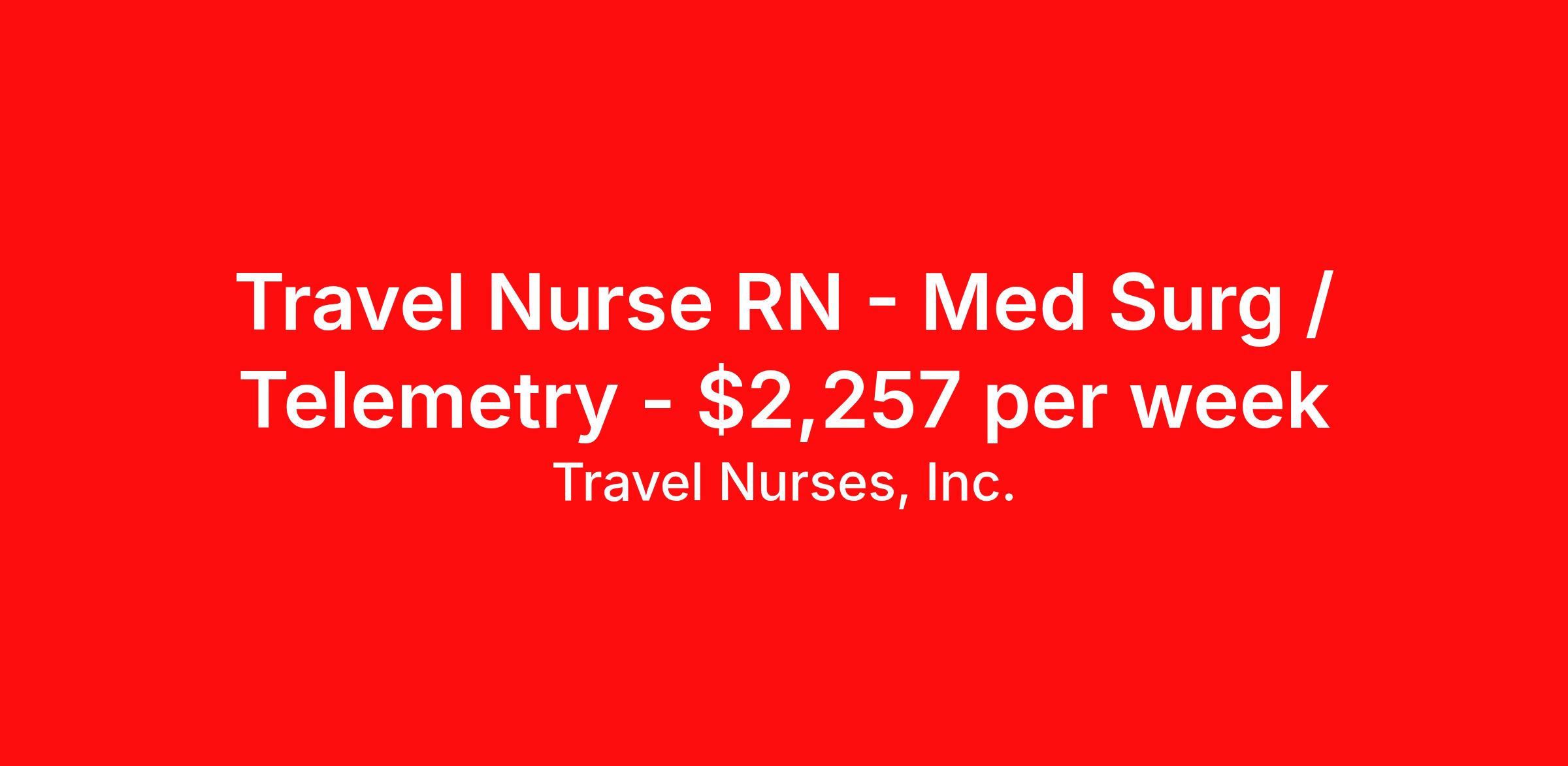 Travel Nurses, Inc. is seeking a travel nurse RN Med Surg / Telemetry for a travel nursing job in Glens Falls, New York. Job Description & Requirements Specialty: Med Surg / Telemetry Discipline: RN Start Date: ASAP Duration: 13 weeks 36 hours per week Shift: 12 hours Employment Type: Travel Travel Nurses, Inc. Job ID 304087. Pay package is based on 12 hour shifts and 36 hours per week (subject to confirmation) with tax-free stipend amount to be determined. Posted job title: Temp - Registered Nurse (RN) - Med Surg/Telemetry (Nights) Glens Falls, NY About Travel Nurses, Inc. Travel Nurses, Inc. is a leading healthcare staffing agency that provides healthcare professionals with opportunities to work across the country. Founded by nurses in 1988, TNI has more than 30 years of experience in the industry. The agency initially focused on staffing operating room settings in the MidSouth. However, this quickly evolved to encompass all nursing specialties and allied health fields nationwide. At the heart of our mission is a profound respect for nurses, whom we consider the cornerstone of healthcare. This acknowledgment extends beyond the nursing profession alone. Travel Nurses, Inc. now proudly embraces a wide array of healthcare professionals, recognizing their crucial roles in our collective mission. Travel Nurses, Inc. is dedicated to providing comprehensive support and opportunities that will help facilitate complete career mobility in the healthcare field. Our commitment to transparency ensures that all professionals, not just nurses, can confidently accept any assignment without financial uncertainties. We prioritize our professionals’ well-being with comprehensive benefits packages, including day-one healthcare coverage, competitive salaries, bonuses and incentives. This underscores our unwavering commitment to offering the best possible rewards and support for all the professionals we serve. Benefits Weekly pay Continuing Education 401k retirement plan Wellness and fitness programs Mileage reimbursement Referral bonus Employee assistance programs Medical benefits Dental benefits Vision benefits Benefits start day 1 License and certification reimbursement Life insurance Retention bonus