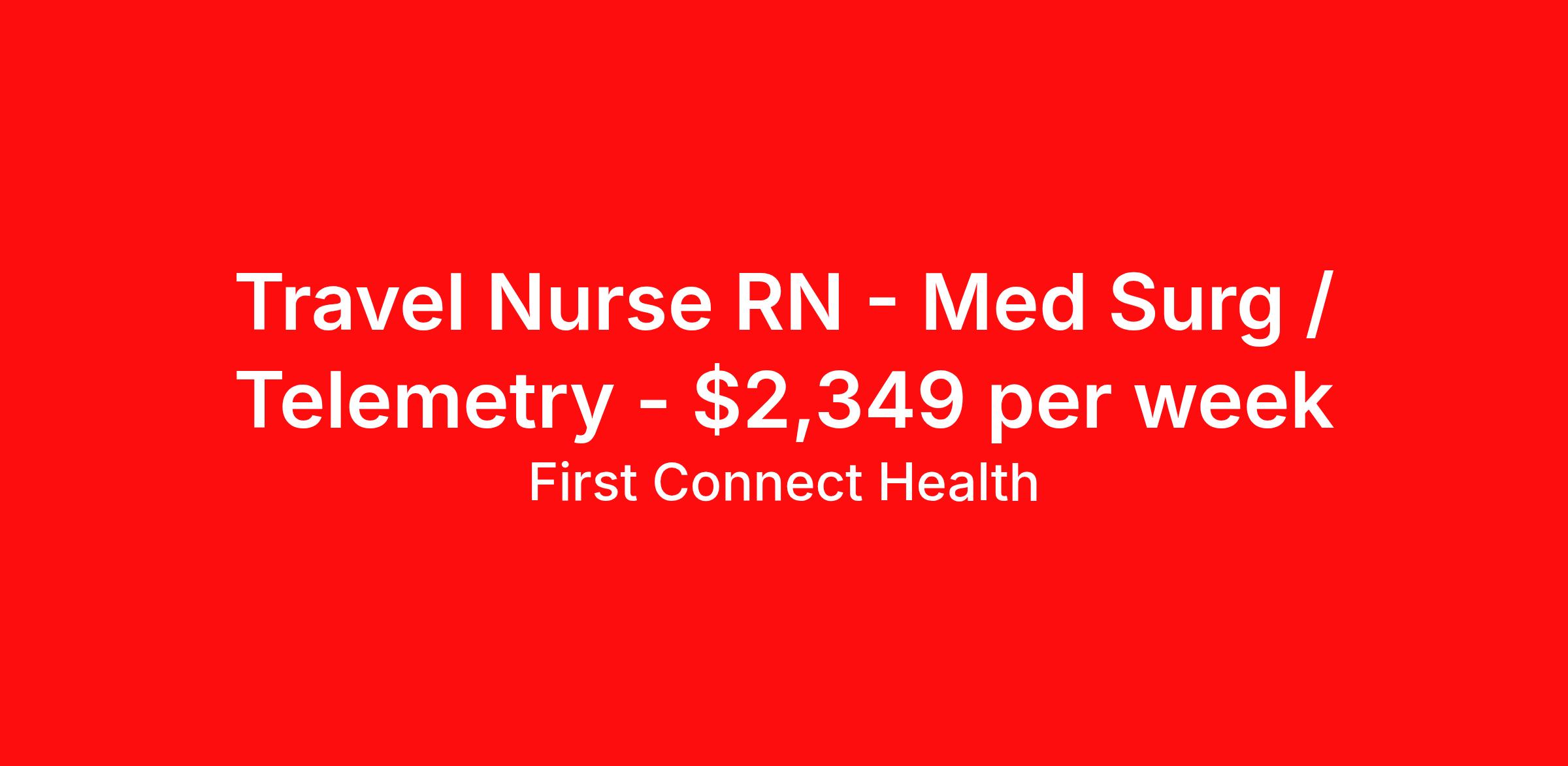 First Connect Health is seeking a travel nurse RN Med Surg / Telemetry for a travel nursing job in Omaha, Nebraska. Job Description & Requirements Specialty: Med Surg / Telemetry Discipline: RN Start Date: 04/06/2026 Duration: 13 weeks 36 hours per week Shift: 12 hours, nights Employment Type: Travel Job Title- RN Med Surg/Tele 4N Neuro Facility Name- CHI Health Creighton University Medical Center - Bergan Mercy Location- Omaha, NE, 68124 Shift- 12 hr nights Pay Package: Gross Weekly- $2349/week Guaranteed Hours- 36 hrs/week Breakdown- W2- $26/hr. Stipend- $1413/week Job Description: Certifications: BLS and NIHSS required Minimum Years of Experience: 2 YRS About First Connect Health At First Connect Health , we take pride in being a Joint Commission–certified healthcare staffing agency , headquartered in Newark, New Jersey. This prestigious certification is more than just a seal — it's a reflection of our commitment to excellence, safety, and quality in everything we do. By meeting the rigorous standards set by The Joint Commission, one of the most respected accrediting bodies in healthcare, we've demonstrated that our processes, compliance, and patient care standards are aligned with the highest levels of quality in the industry. But our dedication goes beyond certifications. Nurses choose First Connect Health because: ✅ Trust and Transparency: We foster honest communication, timely updates, and full transparency throughout your placement journey. ✅ Best Pay & Benefits: We offer industry-leading compensation packages, along with benefits that support your career goals. ✅ Flexibility & Choice: Whether you're seeking short-term assignments, long-term contracts, or local opportunities, we provide the flexibility to suit your preferences. ✅ Personalized Support: Our recruiters take the time to understand your needs, guiding you with care, respect, and responsiveness at every step. When you work with First Connect Health, you're not just another number — you're a valued professional. Join a team that’s focused on your success, your well-being, and your future in healthcare. Benefits Medical benefits Sick pay 401k retirement plan Weekly pay Referral bonus