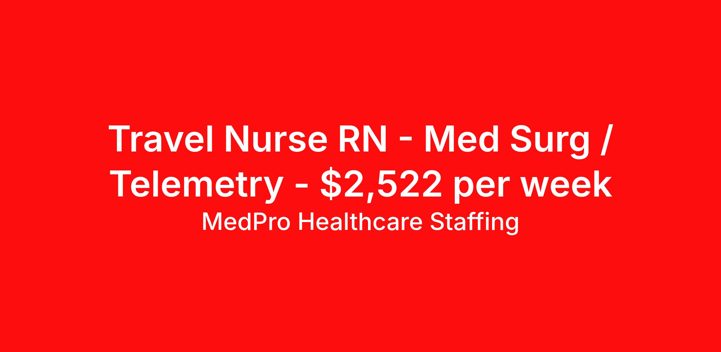 MedPro Healthcare Staffing is seeking a travel nurse RN Med Surg / Telemetry for a travel nursing job in Marquette, Michigan. Job Description & Requirements Specialty: Med Surg / Telemetry Discipline: RN Start Date: 04/06/2026 Duration: 13 weeks 36 hours per week Shift: 12 hours, nights Employment Type: Travel MedPro Healthcare Staffing , a Joint Commission-certified staffing agency, is seeking a quality Med-Surg registered nurse (RN) for a travel assignment with one of our top healthcare clients. Requirements Active RN License Degree from accredited nursing program BLS Certifications Eighteen months of recent experience in an Acute Care Med/Surg setting Other requirements to be determined by our client facility Benefits Weekly pay and direct deposit Full coverage of all credentialing fees Private housing or housing allowance Group Health insurance for you and your family Company-paid life and disability insurance Travel reimbursement 401(k) matching Unlimited Referral Bonuses up to $1,000 Duties Responsibilities Med-Surg Nurses (RN) provide care for primarily adult patients before and after surgical procedures; they also attend to those who are being treated with pharmaceuticals to manage illness. Due to the broad range of medical conditions Med/Surg Nurses will encounter, they must be well-versed in a large variety of health conditions. Complete assignments made by physicians. Provide routine treatment and post-surgical care. Assess changes in patient's health status and perform various treatments. Administer medication. Meticulous documentation as to medication and treatment administration to ensure continuity of care between nursing staff, physicians and other treatment team members. About Agency MedPro Healthcare Staffing is a Joint Commission certified provider of contract staffing services. Since 1983, we have placed nursing and allied travelers in top healthcare facilities nationwide. Join us today for your very own MedPro Experience®. If qualified and interested, please call for immediate consideration. MedPro Staffing is an Equal Opportunity Employer. All applicants will be considered for employment without attention to race, color, religion, national origin, age, sex, disability, marital status or veteran status. Key Words: Registered Nurse, RN, Medical-Surgical, Travel Nurse, Contract Nurse, Agency Nurse, Agency RN, RN-MS, RN- Medical Surgical, Travel RN, Contract, Nursing, RN Med-Surg, Travel Nursing *Weekly payment estimates are intended for informational purposes only and include a gross estimate of hourly wages and reimbursements for meal, incidental, and housing expenses. Your recruiter will confirm your eligibility and provide additional details. MedPro Job ID a0Fcx00000ICOiXEAX. Pay package is based on 12 hour shifts and 36 hours per week (subject to confirmation) with tax-free stipend amount to be determined. Posted job title: Med-Surg/Telemetry Registered Nurse Nursing: Med Surg/Tele. About MedPro Healthcare Staffing At MedPro Healthcare Staffing , we believe no one cares more for caregivers than we do. Our mission is simple: you focus on your patients, and we’ll take care of the rest. As a Joint Commission-certified leader in temporary and contract healthcare staffing since 1983, MedPro has proudly connected nursing and allied travelers with top healthcare facilities across the nation. With thousands of job opportunities available nationwide, we make it easy to find assignments that align with your goals and lifestyle. Our on-staff clinical support team—alongside a compassionate group of experienced recruiters—provides hands-on guidance every step of the way. From Day 1 medical benefits and a 401(k) plan to personalized career support, we’re committed to ensuring every professional we serve feels valued, cared for, and empowered to succeed. Guided by a CEO who is a Registered Nurse, MedPro is built on a foundation of clinical insight and genuine compassion for the caregiving community. Through The MedPro Experience® , we deliver travel assignments that are rewarding, memorable, and designed to help you DREAM big, EXPLORE often, and ACHIEVE greatness. Benefits Day 1 medical, dental, and vision benefits for you and your family Weekly pay and direct deposit Unlimited Referral Bonuses starting at $500 On Staff Clinical Support Team Access to nationwide travel assignments MPX Mobile app -24/7 real-time access to jobs, credentials, assignment details, and more Full coverage of all credentialing fees Private housing or housing allowance Tax Free Per Diems, Housing Stipends and Travel Reimbursements Company-paid life and disability insurance Travel reimbursement 401(k) matching Benefits Weekly pay Referral bonus Employee assistance programs