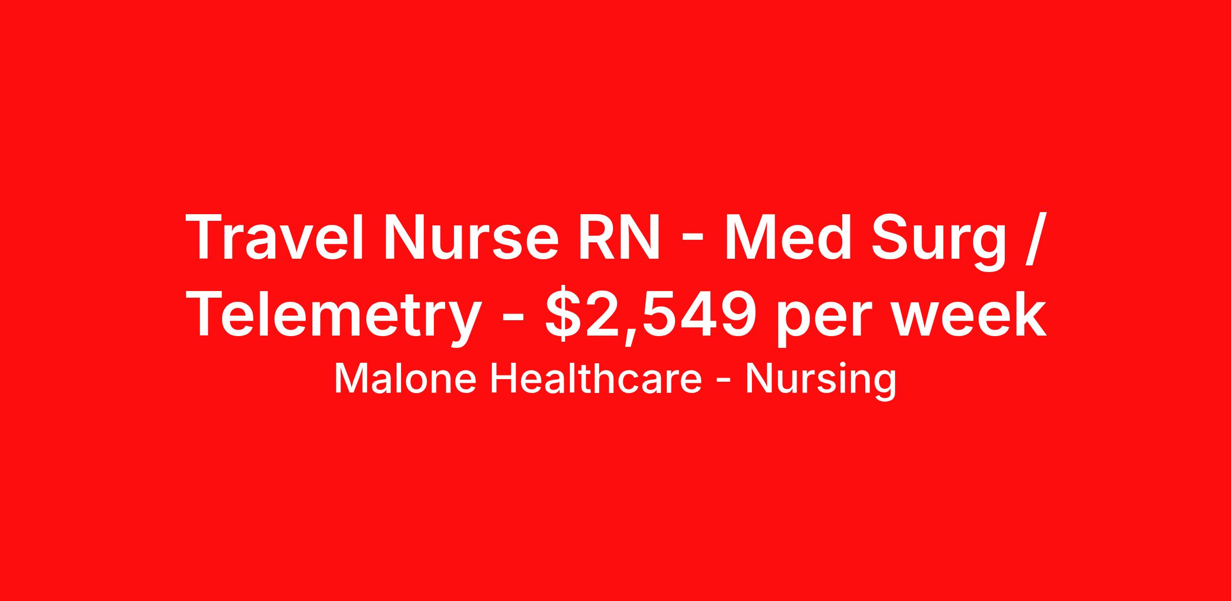Malone Healthcare - Nursing is seeking a travel nurse RN Med Surg / Telemetry for a travel nursing job in Quincy, Illinois. Job Description & Requirements Specialty: Med Surg / Telemetry Discipline: RN Duration: 13 weeks 36 hours per week Shift: 12 hours, days Employment Type: Travel About Malone Healthcare - Nursing With a commitment to providing a higher standard of service and experience in patient care, Malone Healthcare places expert nurses and allied health professionals in rewarding careers throughout the United States. As a leading healthcare staffing agency, Malone’s focus on compliance and integrity translates to a seamless experience for our team members and partner facilities. When you work with Malone Healthcare, you can rely on over 50 years of proven experience placing exceptional professionals in quality healthcare settings. Benefits Weekly pay Holiday Pay Guaranteed Hours Continuing Education 401k retirement plan Pet insurance Referral bonus Medical benefits Dental benefits Vision benefits License and certification reimbursement Life insurance