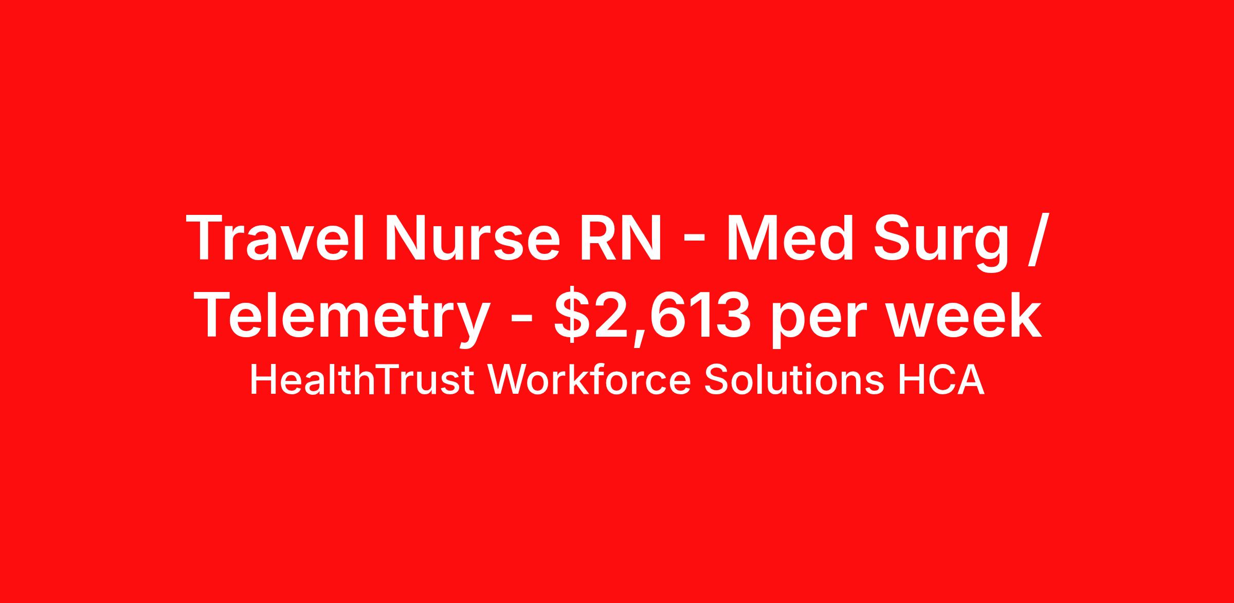 HealthTrust Workforce Solutions HCA is seeking a travel nurse RN Med Surg / Telemetry for a travel nursing job in Marquette, Michigan. Job Description & Requirements Specialty: Med Surg / Telemetry Discipline: RN Start Date: 04/20/2026 Duration: 13 weeks 36 hours per week Shift: 12 hours, days, nights Employment Type: Travel About HealthTrust Workforce Solutions HCA At HealthTrust Workforce Solutions, healthcare is not just about the four walls of a facility but about the people who provide and receive care. Our focus is on empowering healthcare professionals to deliver exceptional patient experiences by providing them with the necessary skills, tools, and support. We partner with healthcare facilities nationwide to ensure that the right professionals are in the right roles. We prioritize our clinicians by giving them a voice and access to opportunities to fulfill their mission of improving lives by providing quality patient care. We are committed to our core values of Trust, Innovation, Adaptability, Courage, and Accountability. We are dedicated to positively impacting the healthcare industry by providing first-priority access to more than 200,000 jobs nationwide to our healthcare professionals. Join us and be part of the HealthTrust family, where you can make a difference every day. We embrace our changing environment, and we maintain a culture that has a rich tradition of transforming itself to meet the challenges of the future. MISSION STATEMENT While putting great people in the right roles is essential, our mission is far greater. We want our clinicians to be part of the HealthTrust family, where healthcare professionals have a voice and are empowered with the right tools and opportunities to fulfill their personal mission of improving lives. Plus, as a preferred partner to thousands of top-performing hospitals, we provide our healthcare professionals with first-priority access to more than 200,000 jobs nationwide. Benefits Dental benefits Vision benefits Referral bonus Continuing Education Life insurance