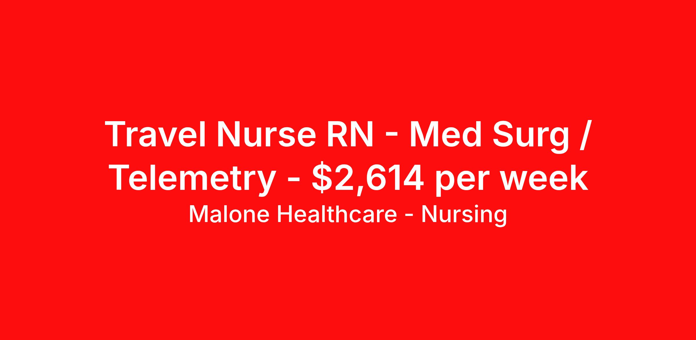 Malone Healthcare - Nursing is seeking a travel nurse RN Med Surg / Telemetry for a travel nursing job in Cleveland, Ohio. Job Description & Requirements Specialty: Med Surg / Telemetry Discipline: RN Start Date: 04/06/2026 Duration: 13 weeks 36 hours per week Shift: 12 hours, days, nights Employment Type: Travel About Malone Healthcare - Nursing With a commitment to providing a higher standard of service and experience in patient care, Malone Healthcare places expert nurses and allied health professionals in rewarding careers throughout the United States. As a leading healthcare staffing agency, Malone’s focus on compliance and integrity translates to a seamless experience for our team members and partner facilities. When you work with Malone Healthcare, you can rely on over 50 years of proven experience placing exceptional professionals in quality healthcare settings. Benefits Weekly pay Holiday Pay Guaranteed Hours Continuing Education 401k retirement plan Pet insurance Referral bonus Medical benefits Dental benefits Vision benefits License and certification reimbursement Life insurance