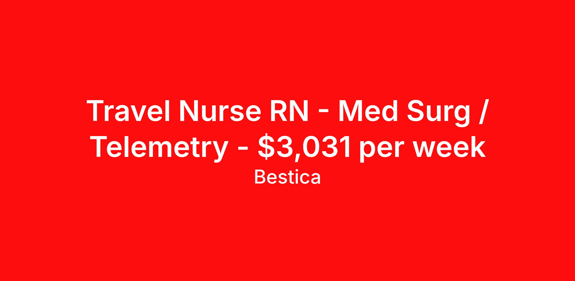 Travel Nurse RN - Med Surg / Telemetry - $3,031 per week