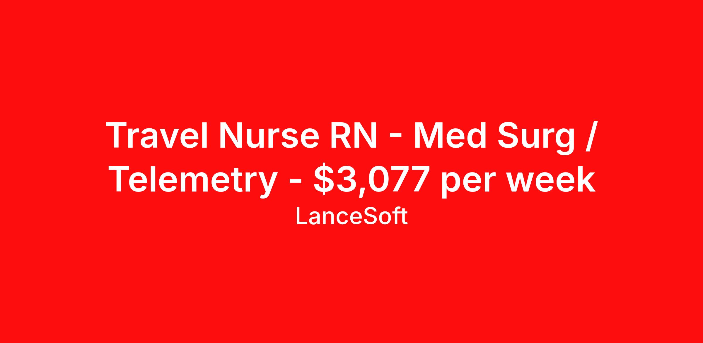 Travel Nurse RN - Med Surg / Telemetry - $3,077 per week