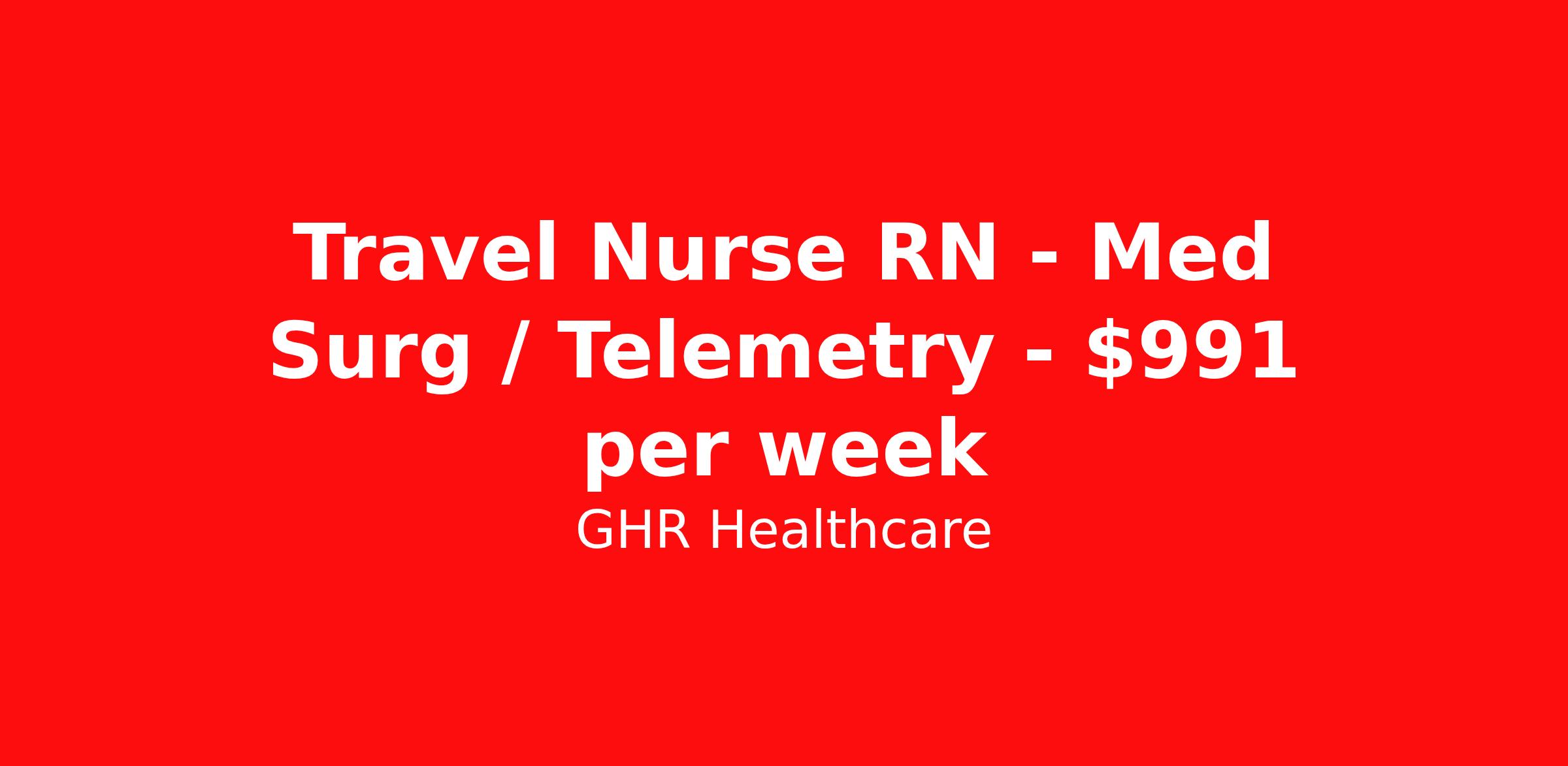 GHR Healthcare is seeking a travel nurse RN Med Surg / Telemetry for a travel nursing job in Staten Island, New York. Job Description & Requirements Specialty: Med Surg / Telemetry Discipline: RN Start Date: 04/07/2026 Duration: 13 weeks 12 hours per week Shift: 12 hours Employment Type: Travel Registered Nurse (RN) – Med/Surg Telemetry (PRN) in Staten Island, NY: Flexible PRN nursing job supporting cardiac telemetry care. Registered Nurse (RN) – Med/Surg Tele (PRN) | Med/Surg Telemetry Nurse | Staten Island, NY Join our dedicated healthcare team as a Med/Surg Tele Registered Nurse in Staten Island, New York (ZIP code 10310). This PRN nursing opportunity offers the chance to provide high-quality medical-surgical and telemetry care in a supportive hospital environment. Ideal for experienced RNs and telemetry nurses seeking flexible PRN shifts in New York nursing jobs. Job Details Weekly Estimated Pay: $805 - $895 (estimated) Location: Staten Island, NY 10310 — Staten Island healthcare / New York nursing jobs Employment Type: PRN (as needed) Setting: Medical-Surgical Telemetry (Med/Surg Telemetry) Shift: 12-hour days Shifts per Week: 1 (flexible PRN schedule) Duration: 52 weeks Start Date: April 7, 2026 Qualifications / Job Requirements Minimum 1 year of recent experience in a Med/Surg Telemetry setting or similar telemetry unit Active Registered Nurse (RN) license in the state of New York Basic Life Support (BLS) certification required Strong clinical assessment, ECG interpretation, and communication skills Ability to work independently and collaboratively within a multidisciplinary care team Key Responsibilities Provide direct patient care on a medical-surgical telemetry unit as a bedside RN Monitor, interpret, and respond to cardiac rhythms using telemetry and ECG monitoring Administer medications and treatments safely and document therapy in the electronic health record (EHR) Collaborate with physicians, advanced practice providers, and allied health staff to optimize patient outcomes Accurately document patient assessments, interventions, and progress notes Educate patients and families on care plans, condition management, and discharge instructions Why join us: Work in a diverse Staten Island community with easy access to Manhattan, scenic parks, and waterfront views while advancing your telemetry nursing skills. This is a great opportunity for RNs focused on medical-surgical and cardiac telemetry care. Apply now to be considered for this PRN Registered Nurse (RN) — Med/Surg Telemetry position in Staten Island, NY. Join our healthcare team today and continue building your career in New York nursing jobs. Benefits 401K with Matching, Healthcare, Dental and Vision Equal Opportunity We are an equal opportunity employer and value diversity across our organization. We do not discriminate on the basis of race, religion, color, national origin, gender, sexual orientation, age, marital status, veteran status, or disability status. GHR Healthcare Job ID 468451. Pay package is based on 12 hour shifts and 12 hours per week (subject to confirmation) with tax-free stipend amount to be determined. Posted job title: Med/Surg Tele About GHR Healthcare For over 30 years, GHR Healthcare has been the bridge between healthcare professionals and the facilities that need them nationwide. We're committed to uncovering your ideal fit, supported by GHR's dedication to competitive compensation, transparent communication, and a devoted team that genuinely cares about your career journey. You can trust us to stand by your side as your advocate, confidante, and partner in advancing your career. At GHR, care and consideration are at the heart of everything we do. Visit ghrhealthcare.com to learn more.