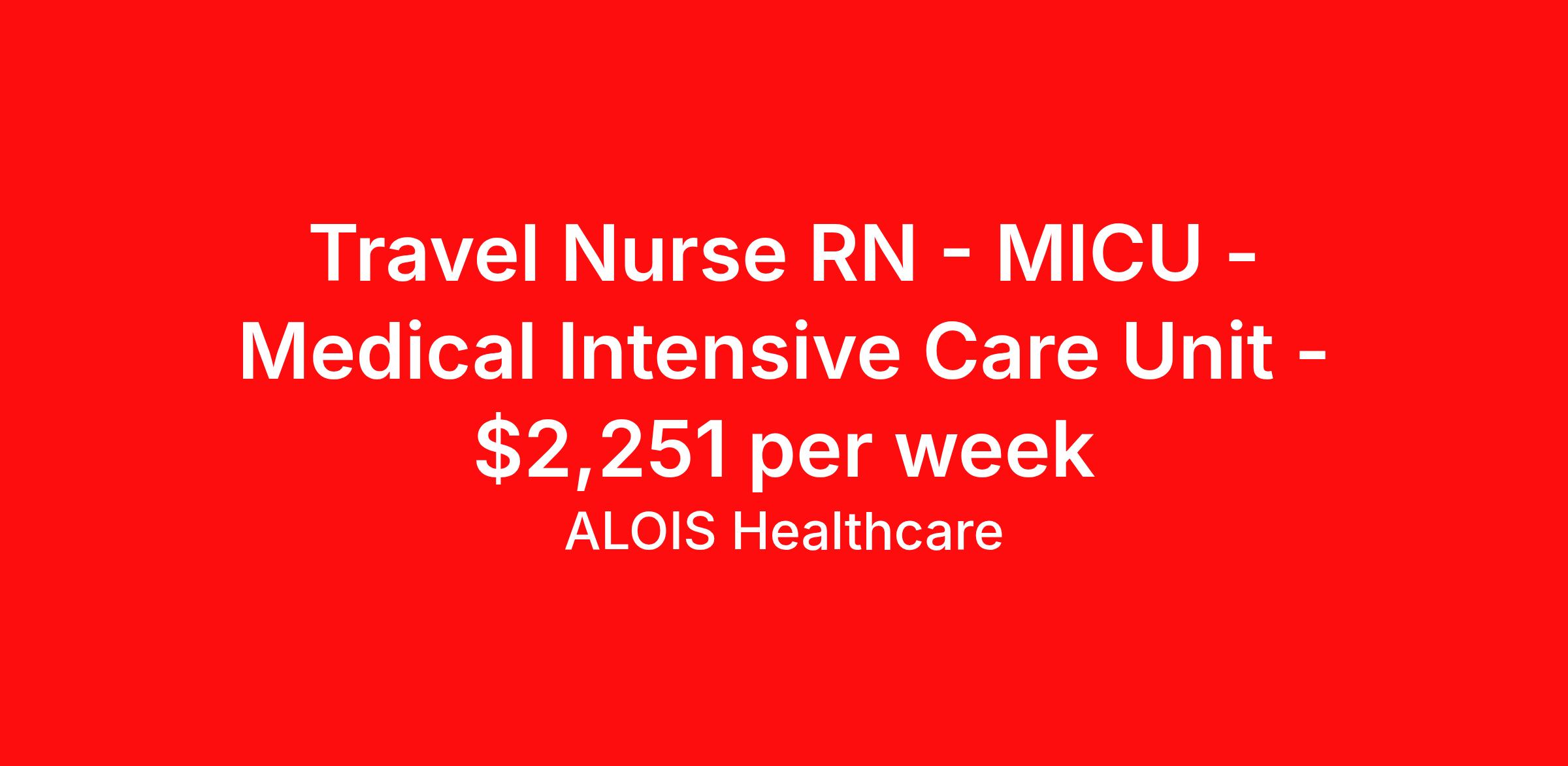 Travel Nurse RN - MICU - Medical Intensive Care Unit - $2,251 per week