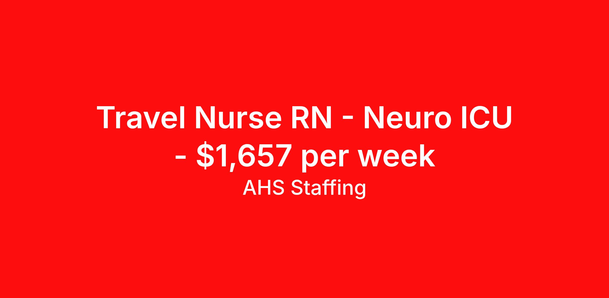 AHS Staffing is seeking a travel nurse RN Neuro ICU for a travel nursing job in Atlanta, Georgia. Job Description & Requirements Specialty: Neuro ICU Discipline: RN Start Date: 04/20/2026 Duration: 7 weeks 36 hours per week Shift: 12 hours, nights Employment Type: Travel AHS Job ID 2373069. Posted job title: Registered Nurse Intensive Care Unit - Neuro About AHS Staffing At AHS Staffing, we are committed to providing a personalized, transparent, and rewarding experience. We go beyond the transactional nature of the industry by offering individualized job matching, clear communication, no-nonsense pay rates, and dedicated recruiter support 24/7. When you're on assignment with us, you'll get access to industry-leading benefits, including comprehensive medical coverage, 401(k) matching, competitive pay packages, licensure reimbursement, weekly pay, and more. Easily manage your day-to-day with our mobile app where you can view your assignment details, manage your compliance and licensing documents, submit timecards, and browse new jobs to land your next adventure. As a nationally recognized and award-winning agency, we understand the importance of providing a seamless experience from application to placement. Our top priority is matching you with assignments that align with both your personal and professional goals. Join us to experience working with an agency that truly prioritizes your success and well-being and see why thousands of healthcare professionals continue to trust us with their careers.