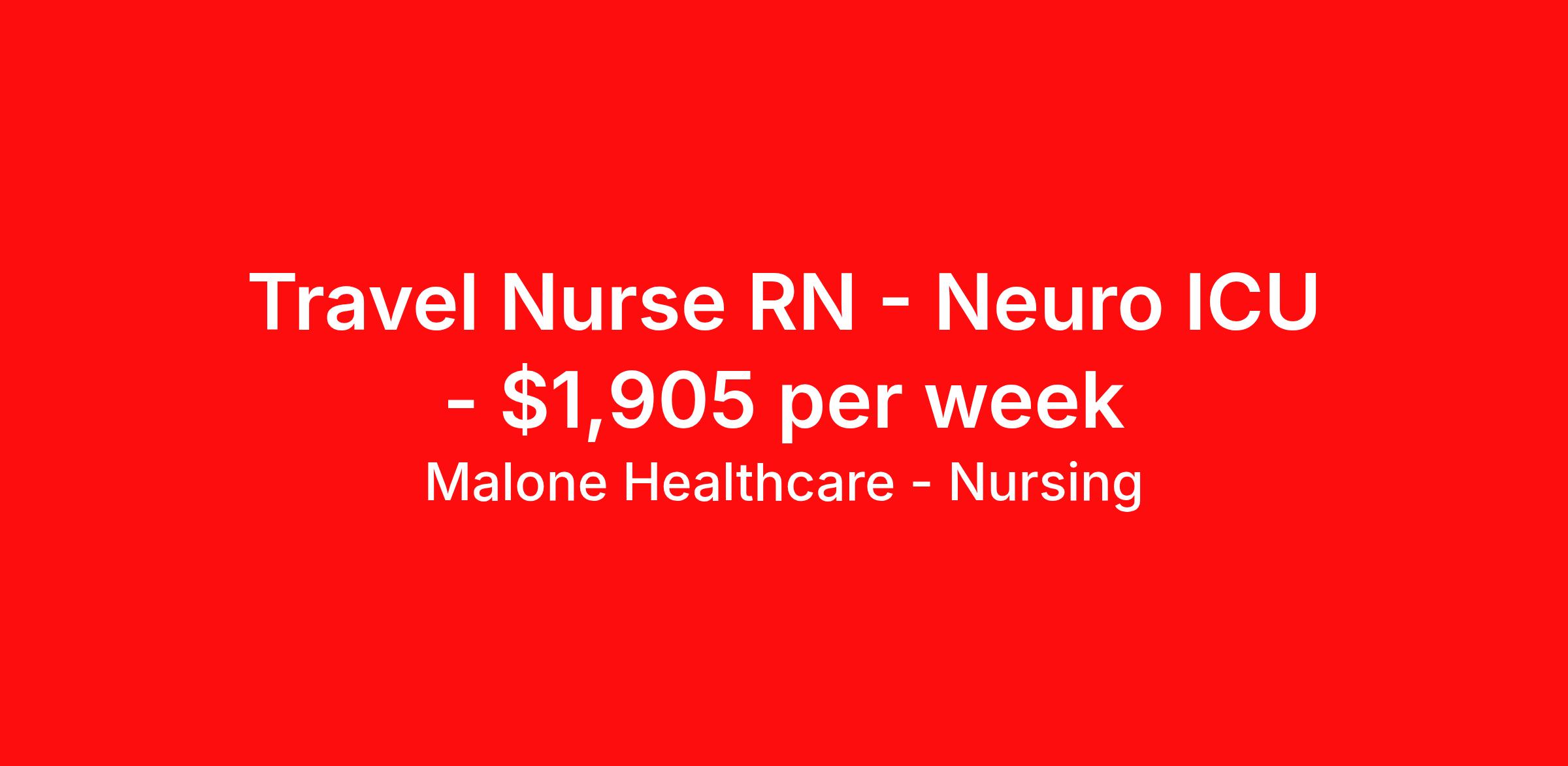 Malone Healthcare - Nursing is seeking a travel nurse RN Neuro ICU for a travel nursing job in Columbia, South Carolina. Job Description & Requirements Specialty: Neuro ICU Discipline: RN Duration: 13 weeks 36 hours per week Shift: 12 hours, days Employment Type: Travel About Malone Healthcare - Nursing With a commitment to providing a higher standard of service and experience in patient care, Malone Healthcare places expert nurses and allied health professionals in rewarding careers throughout the United States. As a leading healthcare staffing agency, Malone’s focus on compliance and integrity translates to a seamless experience for our team members and partner facilities. When you work with Malone Healthcare, you can rely on over 50 years of proven experience placing exceptional professionals in quality healthcare settings. Benefits Weekly pay Holiday Pay Guaranteed Hours Continuing Education 401k retirement plan Pet insurance Referral bonus Medical benefits Dental benefits Vision benefits License and certification reimbursement Life insurance