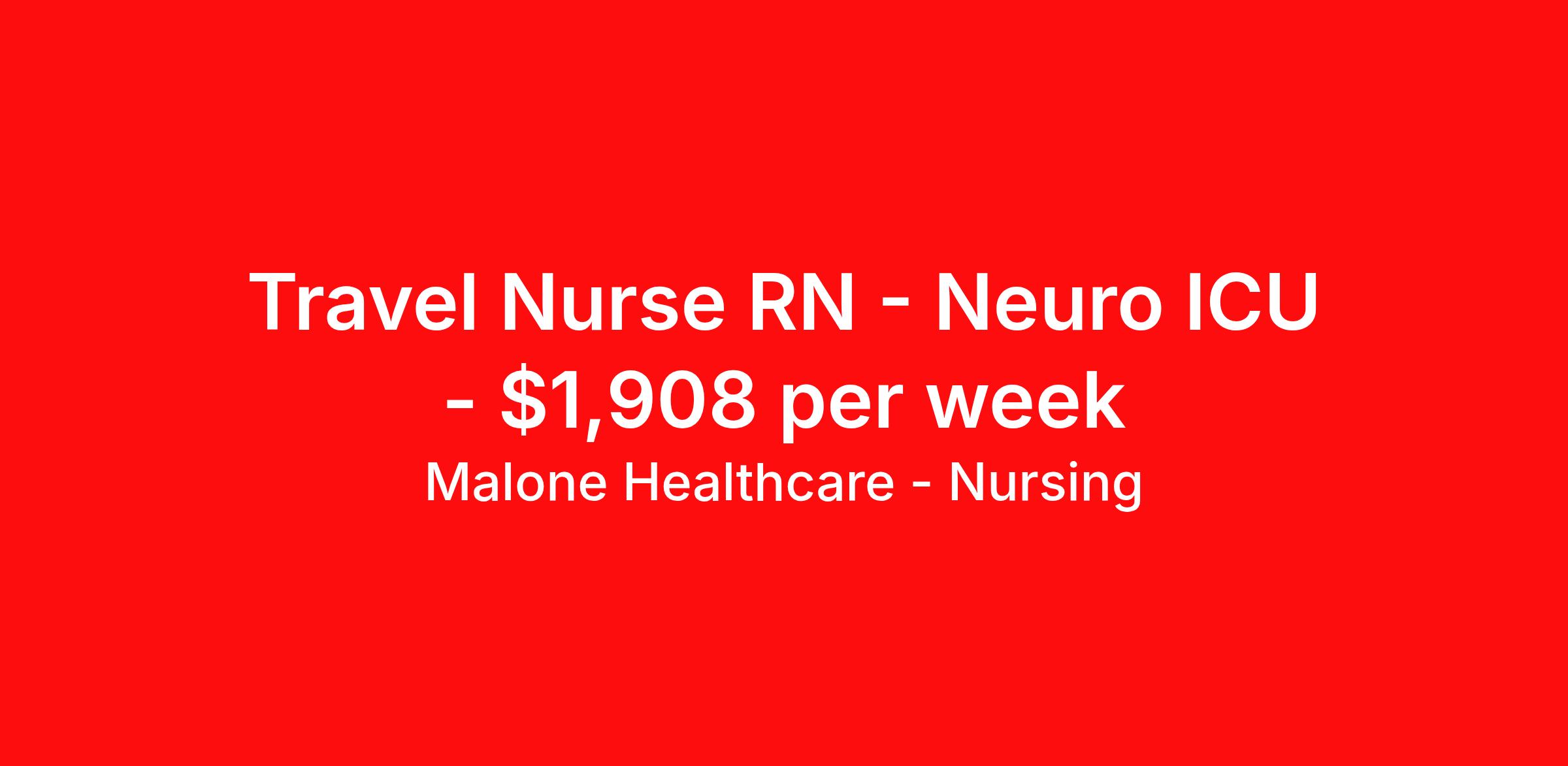 Malone Healthcare - Nursing is seeking a travel nurse RN Neuro ICU for a travel nursing job in Indianapolis, Indiana. Job Description & Requirements Specialty: Neuro ICU Discipline: RN Duration: 13 weeks 36 hours per week Shift: 12 hours, nights Employment Type: Travel About Malone Healthcare - Nursing With a commitment to providing a higher standard of service and experience in patient care, Malone Healthcare places expert nurses and allied health professionals in rewarding careers throughout the United States. As a leading healthcare staffing agency, Malone’s focus on compliance and integrity translates to a seamless experience for our team members and partner facilities. When you work with Malone Healthcare, you can rely on over 50 years of proven experience placing exceptional professionals in quality healthcare settings. Benefits Weekly pay Holiday Pay Guaranteed Hours Continuing Education 401k retirement plan Pet insurance Referral bonus Medical benefits Dental benefits Vision benefits License and certification reimbursement Life insurance