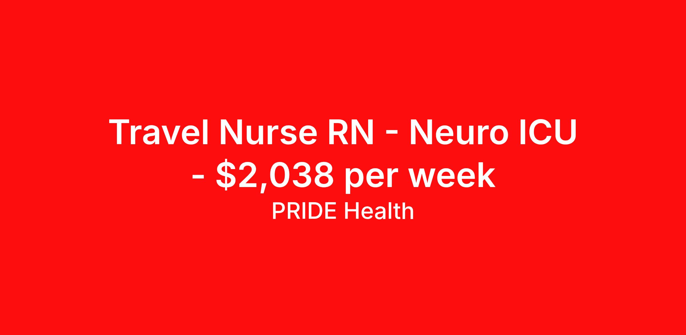 PRIDE Health is seeking a travel nurse RN Neuro ICU for a travel nursing job in Winston-Salem, North Carolina. Job Description & Requirements Specialty: Neuro ICU Discipline: RN Duration: 13 weeks 36 hours per week Shift: 12 hours, nights Employment Type: Travel Pride Health Job ID 17901910. Pay package is based on 12 hour night shift and 36.0 hours per week (subject to confirmation) with tax-free stipend amount to be determined. Posted job title: RN: ICU-Intensive Care Unit18:45:00-07:15:00. About PRIDE Health PRIDE Health is the minority-owned healthcare recruitment division of Pride Global—an integrated human capital solutions and advisory firm. With our robust and abundant travel nursing and allied health employment options across the U.S., PRIDE Health will allow you to help change the way the world lives and heals as it connects you with the industry’s leading healthcare organizations. Pride Global offers eligible employee’s comprehensive healthcare coverage (medical, dental, and vision plans), supplemental coverage (accident insurance, critical illness insurance and hospital indemnity), 401(k)-retirement savings, life & disability insurance, an employee assistance program, legal support, auto, home insurance, pet insurance, and employee discounts with preferred vendors. Benefits Weekly pay Holiday Pay Guaranteed Hours 401k retirement plan Cancelation protection Referral bonus Medical benefits Dental benefits Vision benefits