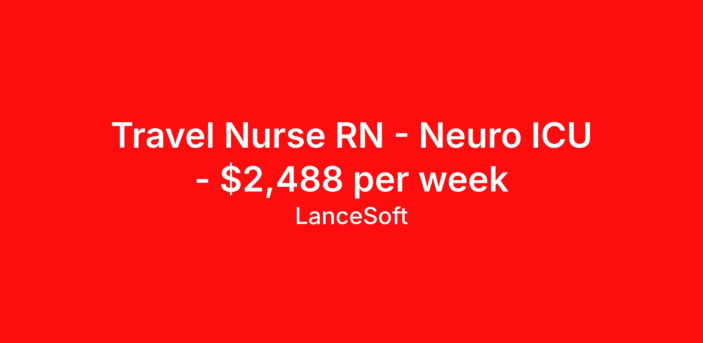 Travel Nurse RN - Neuro ICU - $2,488 per week
