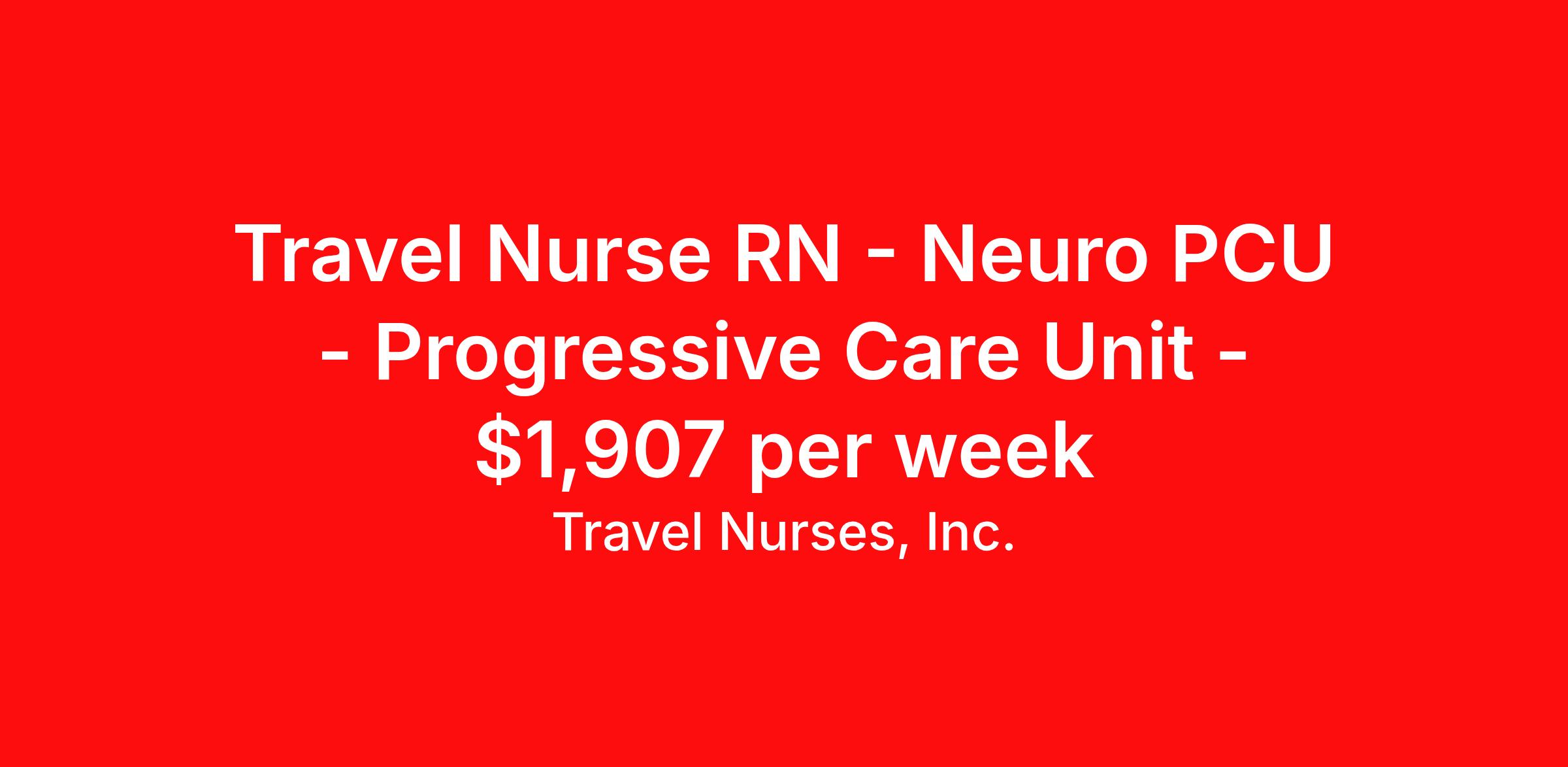 Travel Nurses, Inc. is seeking a travel nurse RN Neuro PCU - Progressive Care Unit for a travel nursing job in Greensboro, North Carolina. Job Description & Requirements Specialty: Neuro PCU - Progressive Care Unit Discipline: RN Start Date: 04/06/2026 Duration: 13 weeks 36 hours per week Shift: 12 hours Employment Type: Travel Travel Nurses, Inc. Job ID 305273. Pay package is based on 12 hour shifts and 36 hours per week (subject to confirmation) with tax-free stipend amount to be determined. Posted job title: Stepdown Neuro Registered Nurse About Travel Nurses, Inc. Travel Nurses, Inc. is a leading healthcare staffing agency that provides healthcare professionals with opportunities to work across the country. Founded by nurses in 1988, TNI has more than 30 years of experience in the industry. The agency initially focused on staffing operating room settings in the MidSouth. However, this quickly evolved to encompass all nursing specialties and allied health fields nationwide. At the heart of our mission is a profound respect for nurses, whom we consider the cornerstone of healthcare. This acknowledgment extends beyond the nursing profession alone. Travel Nurses, Inc. now proudly embraces a wide array of healthcare professionals, recognizing their crucial roles in our collective mission. Travel Nurses, Inc. is dedicated to providing comprehensive support and opportunities that will help facilitate complete career mobility in the healthcare field. Our commitment to transparency ensures that all professionals, not just nurses, can confidently accept any assignment without financial uncertainties. We prioritize our professionals’ well-being with comprehensive benefits packages, including day-one healthcare coverage, competitive salaries, bonuses and incentives. This underscores our unwavering commitment to offering the best possible rewards and support for all the professionals we serve. Benefits Weekly pay Continuing Education 401k retirement plan Wellness and fitness programs Mileage reimbursement Referral bonus Employee assistance programs Medical benefits Dental benefits Vision benefits Benefits start day 1 License and certification reimbursement Life insurance Retention bonus