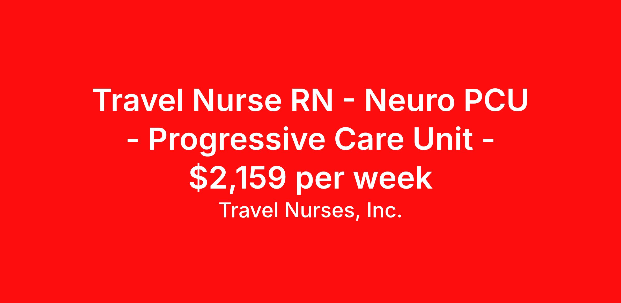 Travel Nurses, Inc. is seeking a travel nurse RN Neuro PCU - Progressive Care Unit for a travel nursing job in Newburgh, Indiana. Job Description & Requirements Specialty: Neuro PCU - Progressive Care Unit Discipline: RN Start Date: ASAP Duration: 13 weeks 36 hours per week Shift: 12 hours Employment Type: Travel Travel Nurses, Inc. Job ID 291710. Pay package is based on 12 hour shifts and 36 hours per week (subject to confirmation) with tax-free stipend amount to be determined. Posted job title: Neurology Registered Nurse Nights - Deaconess Gateway Hospital, Newburgh, IN About Travel Nurses, Inc. Travel Nurses, Inc. is a leading healthcare staffing agency that provides healthcare professionals with opportunities to work across the country. Founded by nurses in 1988, TNI has more than 30 years of experience in the industry. The agency initially focused on staffing operating room settings in the MidSouth. However, this quickly evolved to encompass all nursing specialties and allied health fields nationwide. At the heart of our mission is a profound respect for nurses, whom we consider the cornerstone of healthcare. This acknowledgment extends beyond the nursing profession alone. Travel Nurses, Inc. now proudly embraces a wide array of healthcare professionals, recognizing their crucial roles in our collective mission. Travel Nurses, Inc. is dedicated to providing comprehensive support and opportunities that will help facilitate complete career mobility in the healthcare field. Our commitment to transparency ensures that all professionals, not just nurses, can confidently accept any assignment without financial uncertainties. We prioritize our professionals’ well-being with comprehensive benefits packages, including day-one healthcare coverage, competitive salaries, bonuses and incentives. This underscores our unwavering commitment to offering the best possible rewards and support for all the professionals we serve. Benefits Weekly pay Continuing Education 401k retirement plan Wellness and fitness programs Mileage reimbursement Referral bonus Employee assistance programs Medical benefits Dental benefits Vision benefits Benefits start day 1 License and certification reimbursement Life insurance Retention bonus
