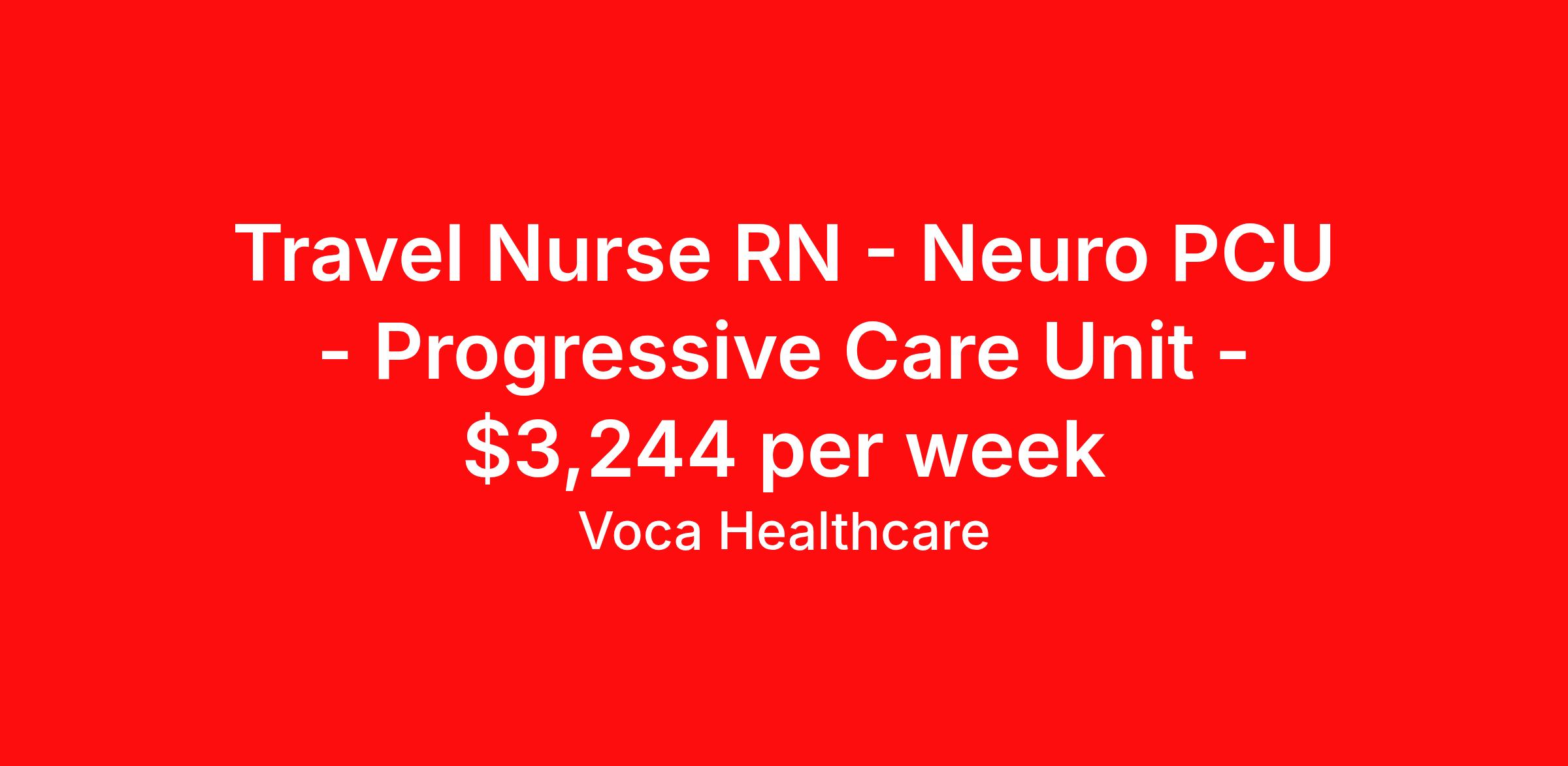 Travel Nurse RN - Neuro PCU - Progressive Care Unit - $3,244 per week