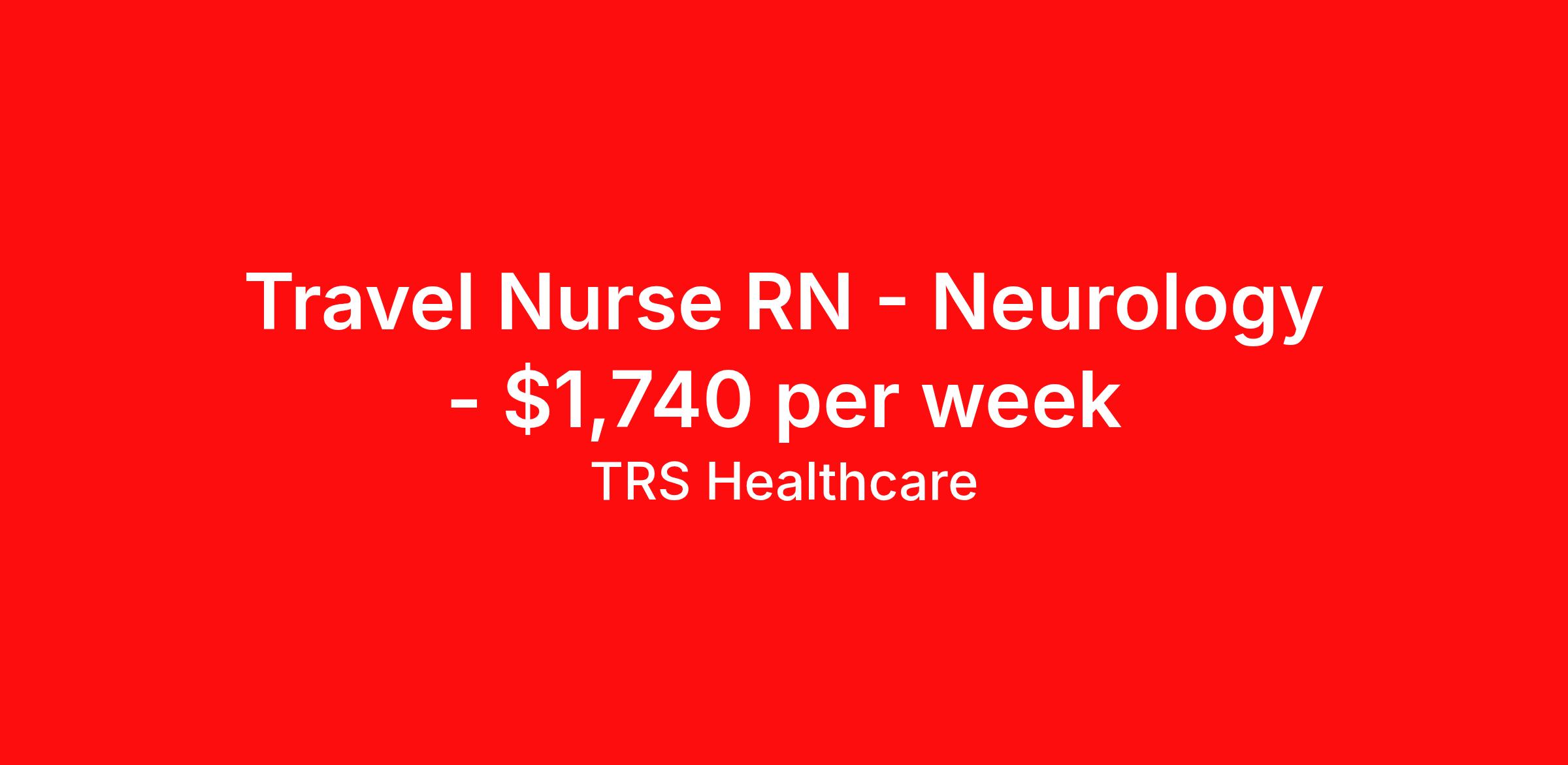 TRS Healthcare is seeking a travel nurse RN Neurology for a travel nursing job in Winston Salem, North Carolina. Job Description & Requirements Specialty: Neurology Discipline: RN Start Date: 04/13/2026 Duration: 13 weeks 36 hours per week Shift: 12 hours, nights Employment Type: Travel TRS Healthcare Job ID 1448337. Pay package is based on 12 hour shifts and 36 hours per week (subject to confirmation) with tax-free stipend amount to be determined. Posted job title: Medical Surgical - Neurology Registered Nurse About TRS Healthcare TRS Healthcare has been a leader in the healthcare staffing industry for over 25 years, providing exceptional career opportunities for travel nurses and allied health professionals. An RN-founded, woman-owned company, TRS Healthcare has team members in all 50 states. We recruit and support registered nurses, licensed practical nurses, surgical technicians, respiratory therapists, imaging technologists, laboratory specialists, and other experienced nursing and allied healthcare professionals. We staff hundreds of healthcare facilities across the U.S. in urban, rural, and underserved areas, including multi-state hospital systems, critical access hospitals, rural community hospitals, long-term care facilities, trauma centers, standalone clinics, and more. Learn more about TRS Healthcare at trshealthcare.com .