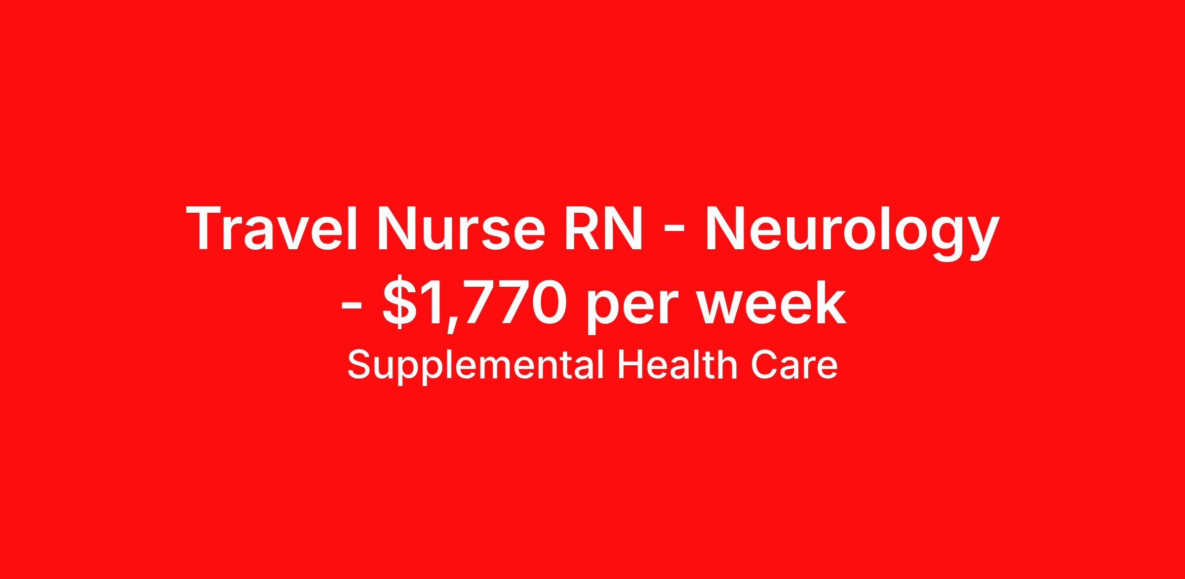 Supplemental Health Care is seeking a travel nurse RN Neurology for a travel nursing job in Hickory, North Carolina. Job Description & Requirements Specialty: Neurology Discipline: RN Start Date: ASAP Duration: 13 weeks 36 hours per week Shift: 12 hours, days Employment Type: Travel Job Description: Supplemental Health Care is connecting Neurology Registered Nurses with top-tier hospital contracts in Hickory, North Carolina. Travel or stay local, either way, we’ll guide you to an opportunity that matches your goals, offering excellent pay, benefits, and support. Qualifications: Current North Carolina Registered Nurse License / Certification American Heart Association BLS 1 to 2 years of recent Neurology experience Neurology Registered Nurse Contract Details: $1,620 - $1,770 per week* Weekly pay 13-week full-time contract with possibility to extend AM shifts available 36 hours per week *Estimated weekly payment may include both taxable wages and tax-free reimbursements for meals, housing, and incidentals. Please speak with a recruiter for details. What We Offer: Full medical, dental, vision, life, and even pet insurance! Round the clock support. No matter where you are or what time it is, Supplemental Health Care is standing by. SHC's Share the Care referral program is the most dynamic, profitable referral program in the industry. 401(k) Retirement Savings Program with a wide range of investment options. Discounted and free online access to CEU courses through Supplemental University. Apply now to launch your next Neurology Registered Nurse assignment, or ask our team about other exciting Registered Nurse opportunities. Supplemental Health Care is an Equal Opportunity Employer. All candidates, including veterans and those with disabilities, are encouraged to apply. SHC will consider for employment qualified applicants with criminal histories in a manner consistent with the requirements of applicable local, state, or federal law. To learn more, visit www.shccares.com/eeo Supplemental Health Care Job ID 1472650. Pay package is based on 12 hour shifts and 36 hours per week (subject to confirmation) with tax-free stipend amount to be determined. Posted job title: Neurology Registered Nurse About Supplemental Health Care At Supplemental Health Care, a simple belief in the power of caring guides a unique commitment to world-class service in healthcare staffing. For 40 years, we’ve supported talented professionals pursuing their life calling in hospitals, schools, home health, corrections, behavioral health, and other settings. At SHC, we inspire vital connections and enrich lives and inspire better outcomes. As recipients of the Best in Staffing Awards for both Client and Talent, Supplemental Health Care is proud to be among only 2% of staffing companies singled out for the distinction based on the real feedback of our employees and the clients we serve. SHC has also earned The Joint Commission’s Gold Seal of Approval and is named among the Largest Health Care Staffing companies in the United States by Staffing Industry Analysts. We are also thrilled to recognize our very own SLP, Dr. Kelly Byrd as the American Staffing Association 2024 National Staffing Employee of the Year and Health Care Sector All-Star. We’re honored to connect Dr. Byrd to employment, share her incredible story, and support her family literacy nonprofit. For everyone that we serve, SHC is the place where caring hearts thrive. Benefits Referral bonus Benefits start day 1 401k retirement plan Continuing Education Discount program Health savings account