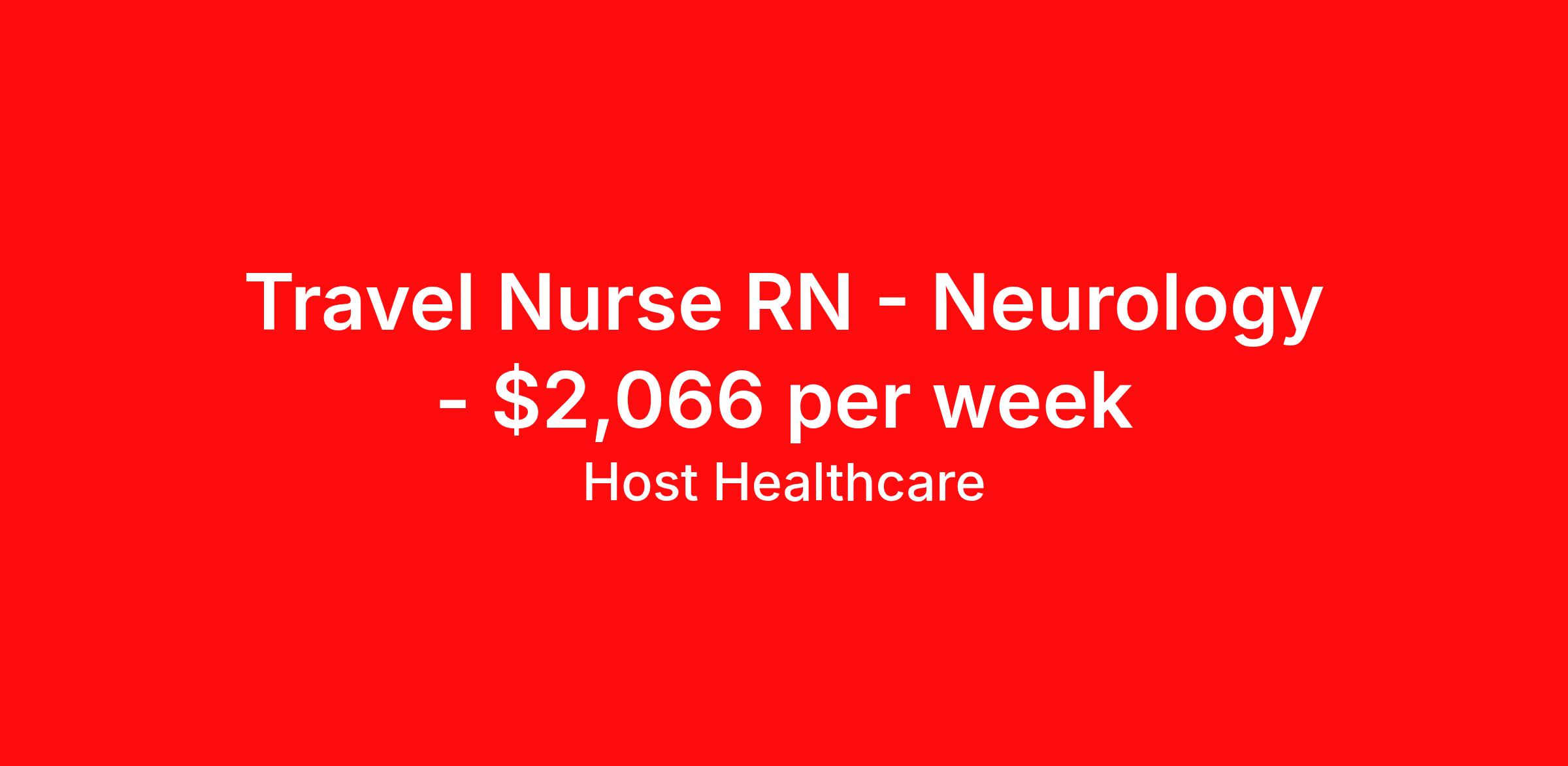 Host Healthcare is seeking a travel nurse RN Neurology for a travel nursing job in Newburgh, Indiana. Job Description & Requirements Specialty: Neurology Discipline: RN Start Date: 03/30/2026 Duration: 13 weeks 36 hours per week Shift: 12 hours, days Employment Type: Travel Host Healthcare Job ID a1fVJ000007gE7OYAU. Pay package is based on 12 hour shifts and 36 hours per week (subject to confirmation) with tax-free stipend amount to be determined. Posted job title: RN - Neurology About Host Healthcare At Host Healthcare, we provide a truly comfortable experience as you explore your travel nursing, therapy, or allied career. We make your travel healthcare journey easy by taking care of all the details, so you don’t have to. We are on a mission to help others live better and we do this by helping the healers of the world be as comfortable as possible. With access to tens of thousands of travel nursing, therapy, and allied jobs in all 50 states, our responsive and friendly recruiters find your dream position based on what’s important to you. During your assignment, get access to premium benefits, including Day 1 medical that continues up to 30 days between assignments, 401K matching, travel reimbursements, dedicated housing support, and more. We also offer 24/7 support from our team and access to our on-staff clinicians so you can feel comfortable and confident throughout your entire assignment. Travel comfortably with Host Healthcare. Benefits Referral bonus School loan reimbursement Vision benefits Wellness and fitness programs Company provided housing options License and certification reimbursement Life insurance Medical benefits Mileage reimbursement Pet insurance Discount program Employee assistance programs Guaranteed Hours Health savings account Holiday Pay 401k retirement plan Continuing Education Dental benefits