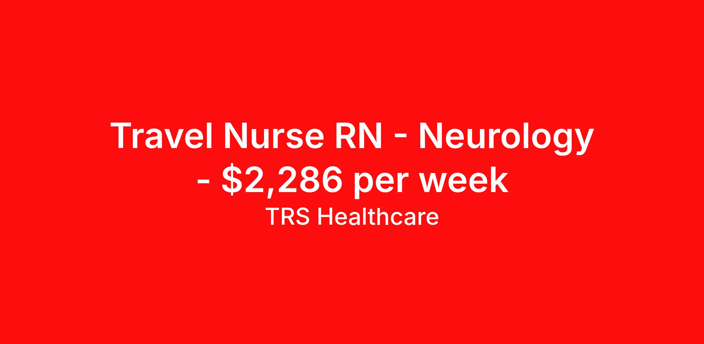 TRS Healthcare is seeking a travel nurse RN Neurology for a travel nursing job in Mason City, Iowa. Job Description & Requirements Specialty: Neurology Discipline: RN Start Date: 04/06/2026 Duration: 13 weeks 40 hours per week Shift: 8 hours, days Employment Type: Travel TRS Healthcare Job ID 1434527. Pay package is based on 8 hour shifts and 40 hours per week (subject to confirmation) with tax-free stipend amount to be determined. Posted job title: Medical Surgical - Neurology Registered Nurse About TRS Healthcare TRS Healthcare has been a leader in the healthcare staffing industry for over 25 years, providing exceptional career opportunities for travel nurses and allied health professionals. An RN-founded, woman-owned company, TRS Healthcare has team members in all 50 states. We recruit and support registered nurses, licensed practical nurses, surgical technicians, respiratory therapists, imaging technologists, laboratory specialists, and other experienced nursing and allied healthcare professionals. We staff hundreds of healthcare facilities across the U.S. in urban, rural, and underserved areas, including multi-state hospital systems, critical access hospitals, rural community hospitals, long-term care facilities, trauma centers, standalone clinics, and more. Learn more about TRS Healthcare at trshealthcare.com .