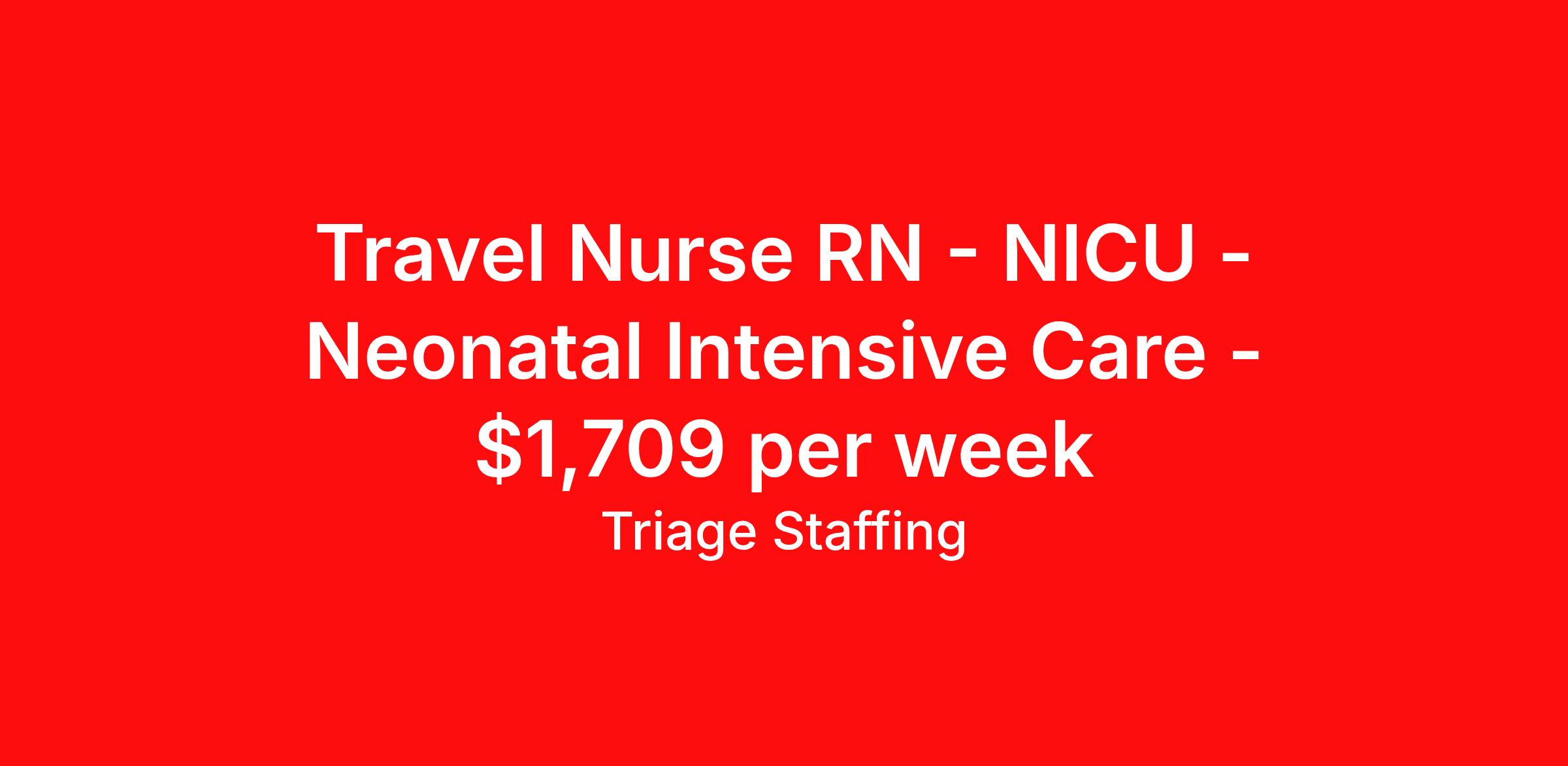 Travel Nurse RN - NICU - Neonatal Intensive Care - $1,709 per week