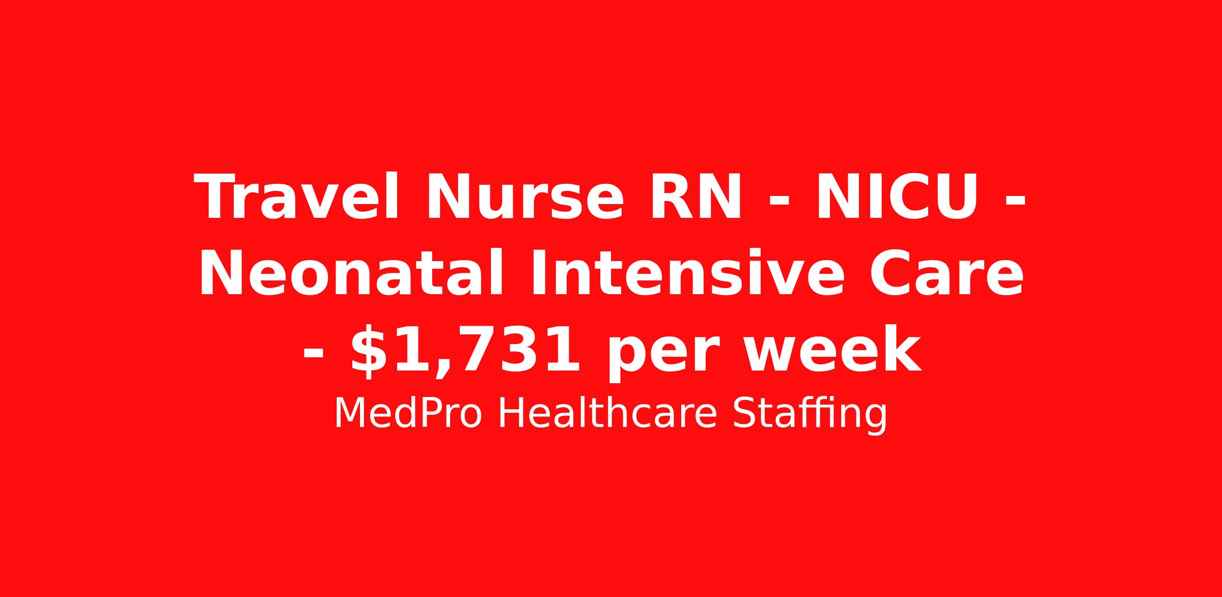 MedPro Healthcare Staffing is seeking a travel nurse RN NICU - Neonatal Intensive Care for a travel nursing job in Natchez, Mississippi. Job Description & Requirements Specialty: NICU - Neonatal Intensive Care Discipline: RN Start Date: 05/11/2026 Duration: 13 weeks 36 hours per week Shift: 12 hours, nights Employment Type: Travel MedPro Healthcare Staffing , a Joint Commission-certified staffing agency, is seeking a quality NICU Registered Nurse (RN) for a travel assignment with one of our top healthcare clients. Requirements Eighteen months of recent experience in an Acute Care NICU setting Active RN License BLS, PALS, & NRP Certifications Degree from accredited nursing program Other requirements to be determined by our client facility Benefits Weekly pay and direct deposit Full coverage of all credentialing fees Private housing or housing allowance Group Health insurance for you and your family Company-paid life and disability insurance Travel reimbursement 401(k) matching Unlimited Referral Bonuses up to $1,000 Duties Responsibilities The RN demonstrates the ability to make clinical judgments and utilize critical thinking in an effective and efficient manner with supervision. As well, the NICU Registered Nurse (RN) will perform according to nursing standards and is accountable in managing patient care and assisting others in the management of patient care. Provide direct and specialized care for newborns needing close monitoring due to premature birth, birth defects, infection, or other medical conditions requiring surgery or therapy. Work in the neonatal intensive care unit (NICU) with doctors and other healthcare professionals. Assist in developing and implementing a plan of care for high-risk newborns requiring high-technology care, including ventilators, incubators, or other special equipment or surgery. About Agency MedPro Healthcare Staffing is a Joint Commission certified provider of contract staffing services. Since 1983, we have placed nursing and allied travelers in top healthcare facilities nationwide. Join us today for your very own MedPro Experience®. If qualified and interested, please call for immediate consideration. MedPro Staffing is an Equal Opportunity Employer. All applicants will be considered for employment without attention to race, color, religion, national origin, age, sex, disability, marital status or veteran status. Key Words: Registered Nurse, RN, NICU, Neonatal, Contract Nurse, Travel Nurse, Agency RN, Travel RN, Per Diem, Nursing, Contract, Travel Nursing *Weekly payment estimates are intended for informational purposes only and include a gross estimate of hourly wages and reimbursements for meal, incidental, and housing expenses. Your recruiter will confirm your eligibility and provide additional details. MedPro Job ID a0Fcx00000M7bpNEAR. Pay package is based on 12 hour shifts and 36 hours per week (subject to confirmation) with tax-free stipend amount to be determined. Posted job title: NICU Registered Nurse Nursing: NICU-Neonatal Intensive Care. About MedPro Healthcare Staffing At MedPro Healthcare Staffing , we believe no one cares more for caregivers than we do. Our mission is simple: you focus on your patients, and we’ll take care of the rest. As a Joint Commission-certified leader in temporary and contract healthcare staffing since 1983, MedPro has proudly connected nursing and allied travelers with top healthcare facilities across the nation. With thousands of job opportunities available nationwide, we make it easy to find assignments that align with your goals and lifestyle. Our on-staff clinical support team—alongside a compassionate group of experienced recruiters—provides hands-on guidance every step of the way. From Day 1 medical benefits and a 401(k) plan to personalized career support, we’re committed to ensuring every professional we serve feels valued, cared for, and empowered to succeed. Guided by a CEO who is a Registered Nurse, MedPro is built on a foundation of clinical insight and genuine compassion for the caregiving community. Through The MedPro Experience® , we deliver travel assignments that are rewarding, memorable, and designed to help you DREAM big, EXPLORE often, and ACHIEVE greatness. Benefits Day 1 medical, dental, and vision benefits for you and your family Weekly pay and direct deposit Unlimited Referral Bonuses starting at $500 On Staff Clinical Support Team Access to nationwide travel assignments MPX Mobile app -24/7 real-time access to jobs, credentials, assignment details, and more Full coverage of all credentialing fees Private housing or housing allowance Tax Free Per Diems, Housing Stipends and Travel Reimbursements Company-paid life and disability insurance Travel reimbursement 401(k) matching Benefits Weekly pay Referral bonus Employee assistance programs