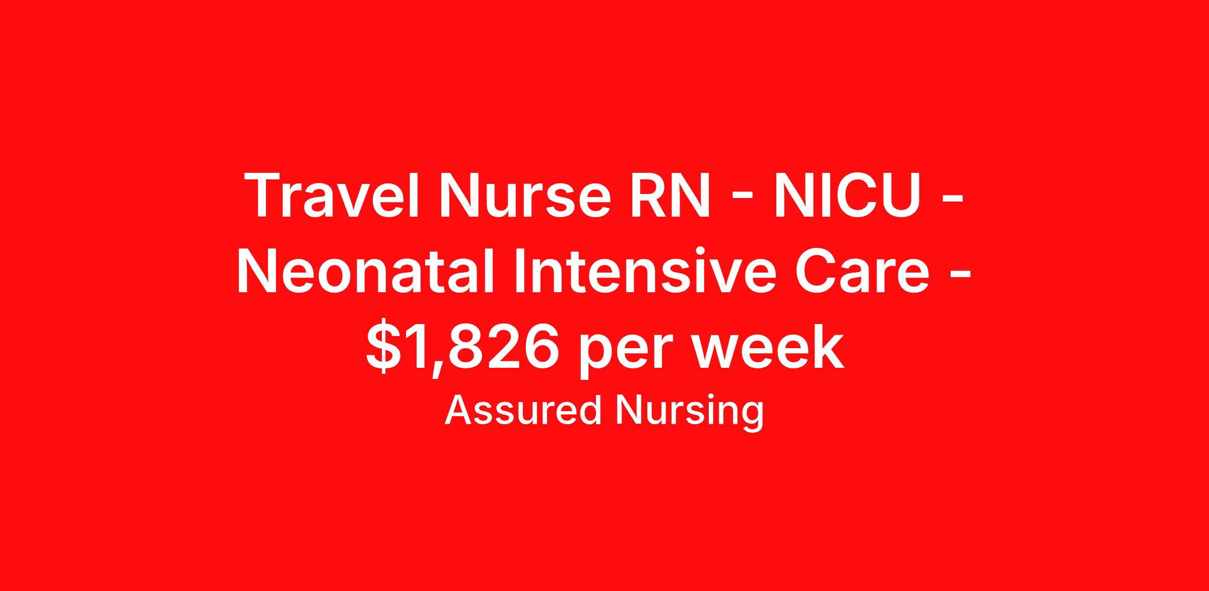 Travel Nurse RN - NICU - Neonatal Intensive Care - $1,826 per week