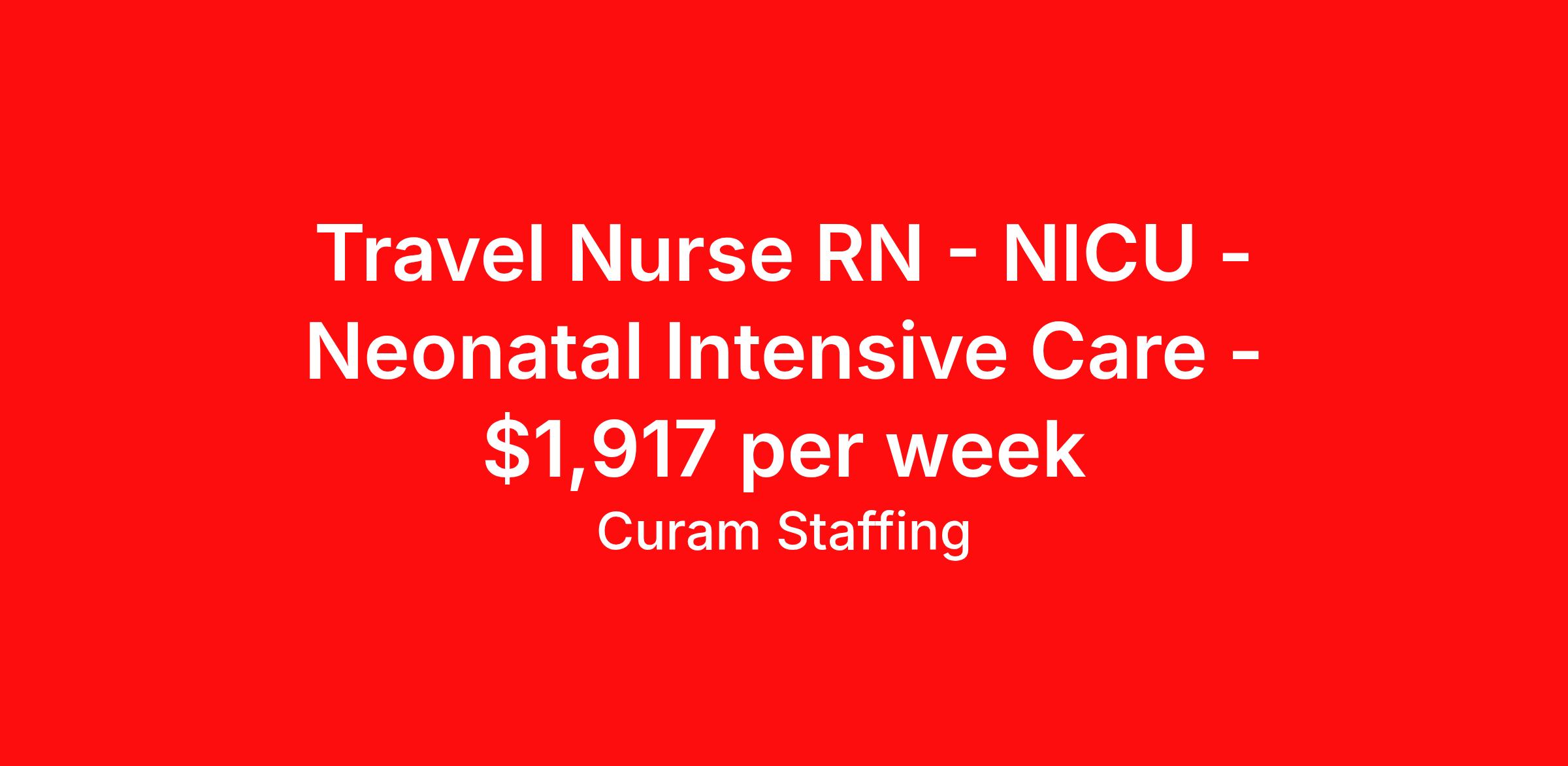 Travel Nurse RN - NICU - Neonatal Intensive Care - $1,917 per week