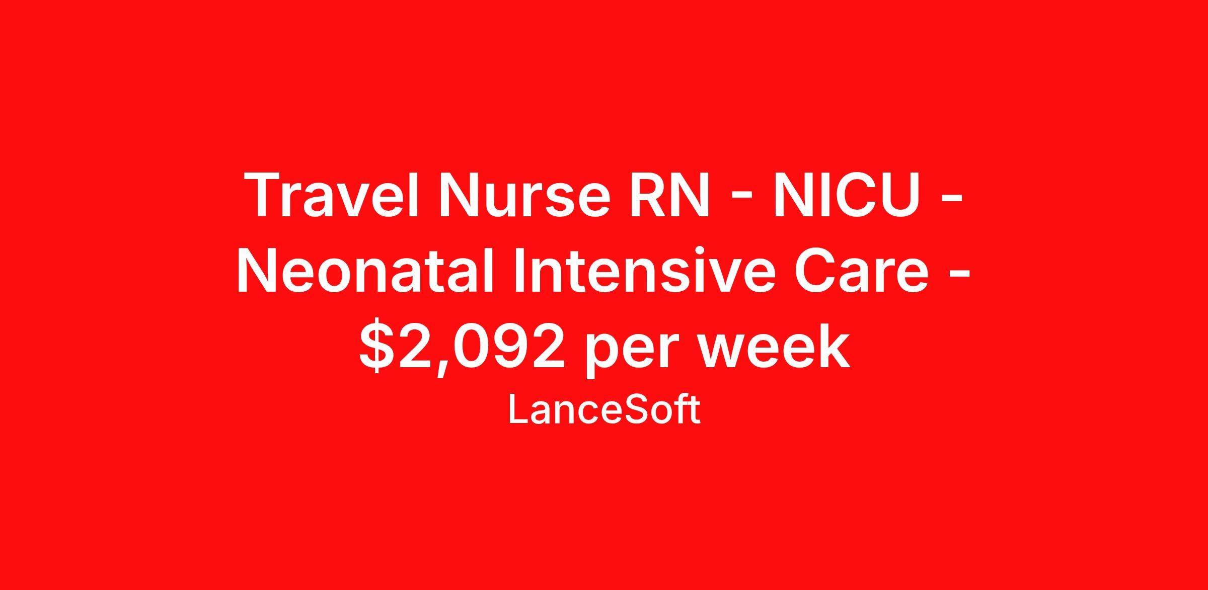 Travel Nurse RN - NICU - Neonatal Intensive Care - $2,092 per week