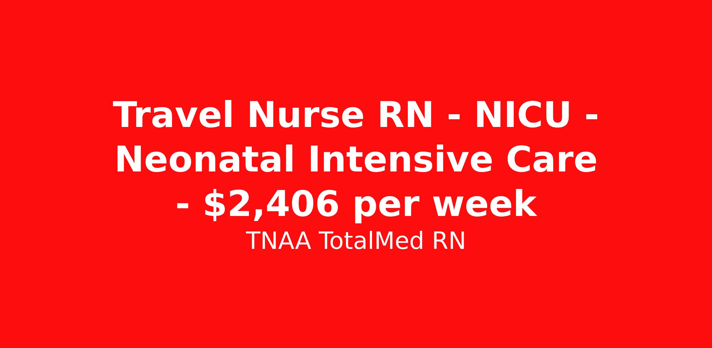 Travel Nurse RN - NICU - Neonatal Intensive Care - $2,406 per week