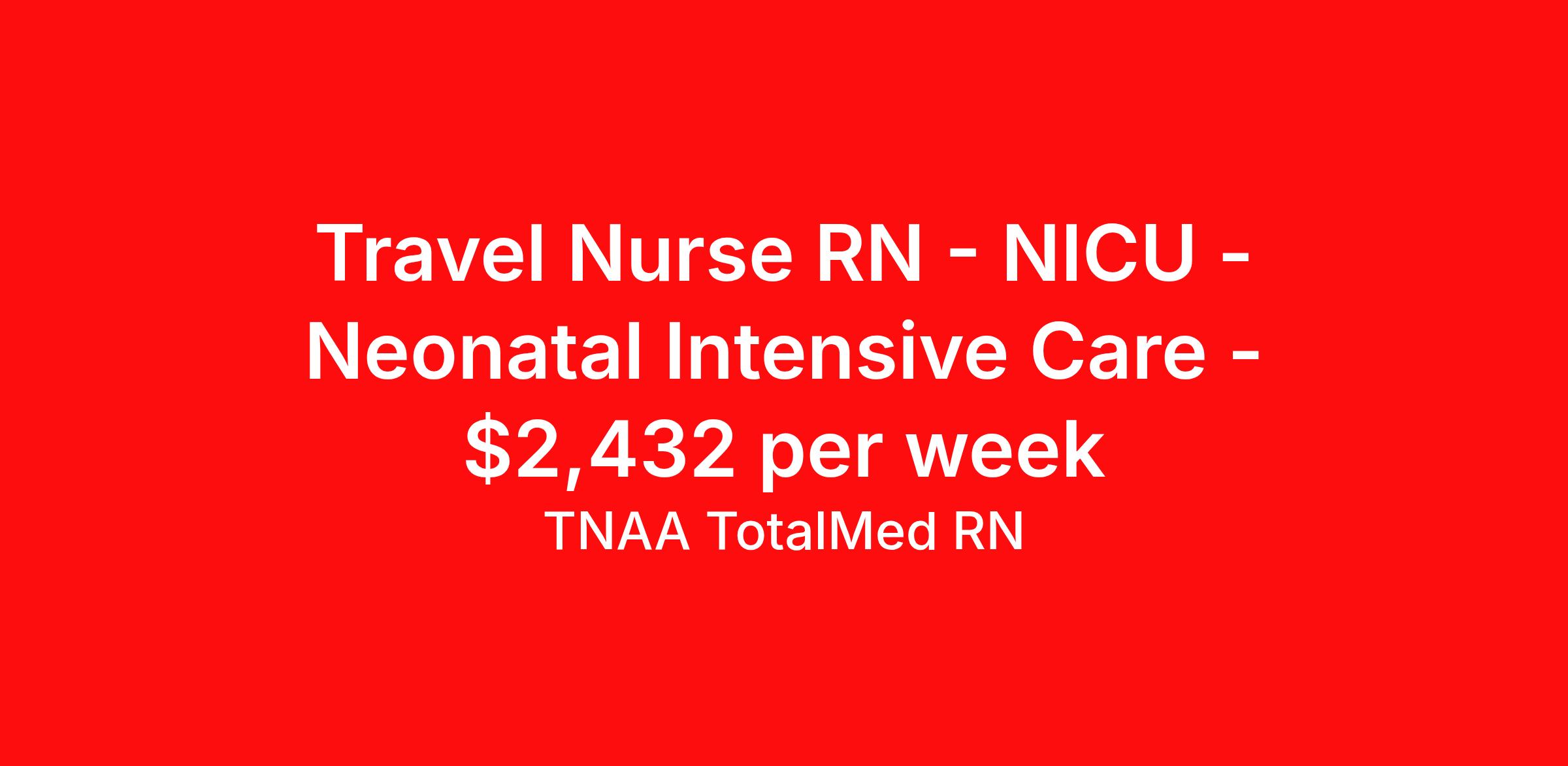 Travel Nurse RN - NICU - Neonatal Intensive Care - $2,432 per week