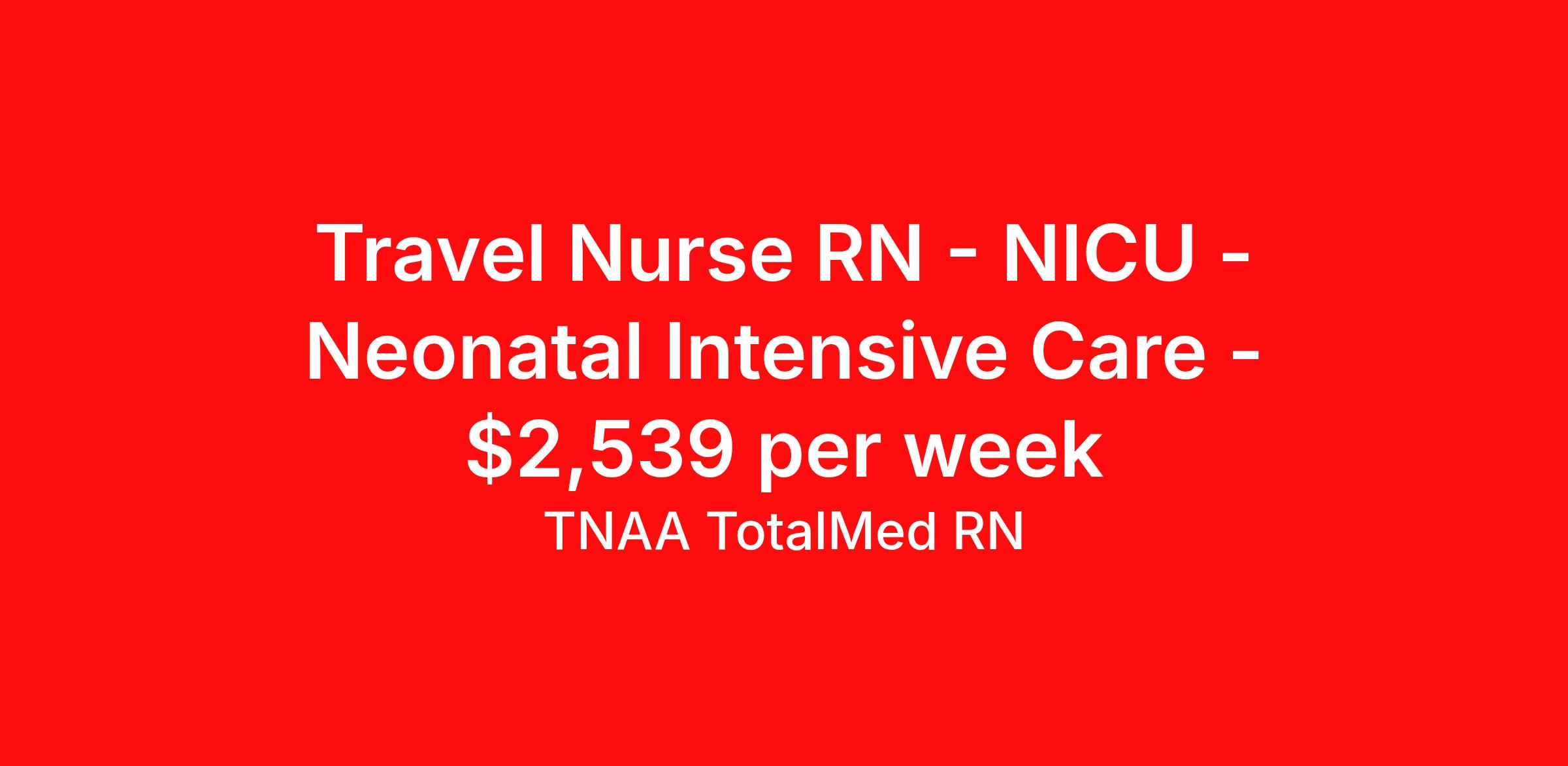 Travel Nurse RN - NICU - Neonatal Intensive Care - $2,539 per week