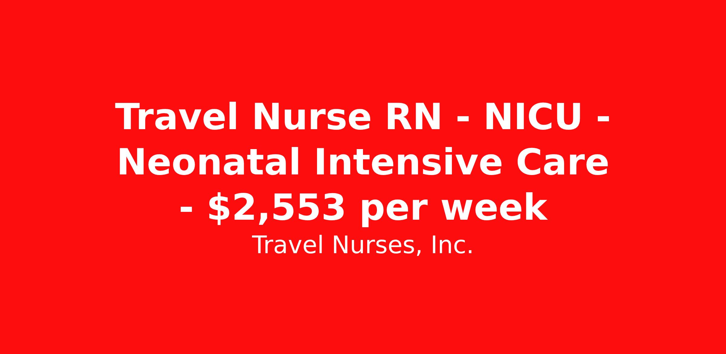 Travel Nurses, Inc. is seeking a travel nurse RN NICU - Neonatal Intensive Care for a travel nursing job in Modesto, California. Job Description & Requirements Specialty: NICU - Neonatal Intensive Care Discipline: RN Start Date: 04/14/2026 Duration: 13 weeks 36 hours per week Shift: 12 hours Employment Type: Travel Travel Nurses, Inc. Job ID 308638. Pay package is based on 12 hour shifts and 36 hours per week (subject to confirmation) with tax-free stipend amount to be determined. Posted job title: NICU Registered Nurse About Travel Nurses, Inc. Travel Nurses, Inc. is a leading healthcare staffing agency that provides healthcare professionals with opportunities to work across the country. Founded by nurses in 1988, TNI has more than 30 years of experience in the industry. The agency initially focused on staffing operating room settings in the MidSouth. However, this quickly evolved to encompass all nursing specialties and allied health fields nationwide. At the heart of our mission is a profound respect for nurses, whom we consider the cornerstone of healthcare. This acknowledgment extends beyond the nursing profession alone. Travel Nurses, Inc. now proudly embraces a wide array of healthcare professionals, recognizing their crucial roles in our collective mission. Travel Nurses, Inc. is dedicated to providing comprehensive support and opportunities that will help facilitate complete career mobility in the healthcare field. Our commitment to transparency ensures that all professionals, not just nurses, can confidently accept any assignment without financial uncertainties. We prioritize our professionals’ well-being with comprehensive benefits packages, including day-one healthcare coverage, competitive salaries, bonuses and incentives. This underscores our unwavering commitment to offering the best possible rewards and support for all the professionals we serve. Benefits Weekly pay Continuing Education 401k retirement plan Wellness and fitness programs Mileage reimbursement Referral bonus Employee assistance programs Medical benefits Dental benefits Vision benefits Benefits start day 1 License and certification reimbursement Life insurance Retention bonus