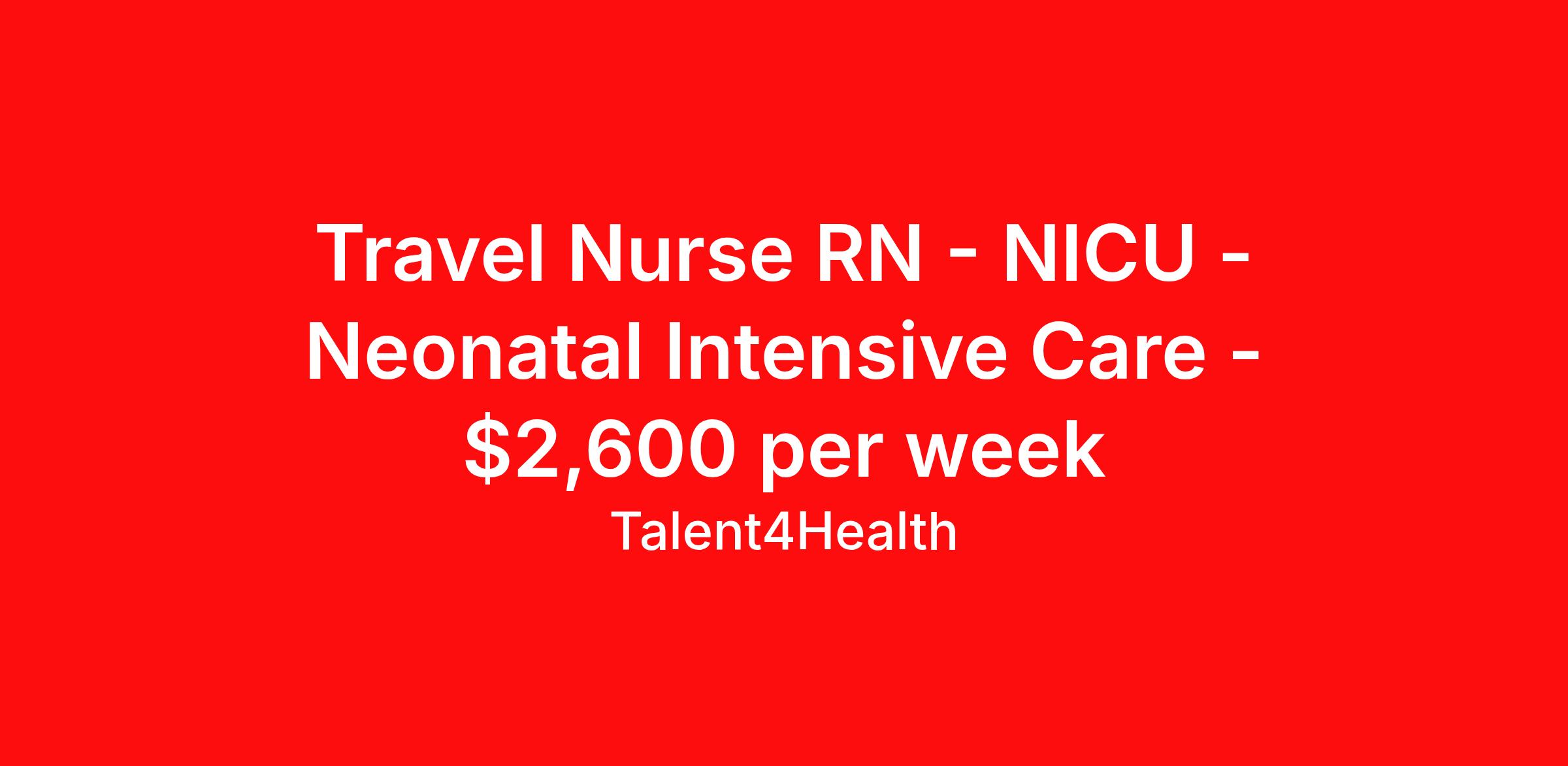 Travel Nurse RN - NICU - Neonatal Intensive Care - $2,600 per week