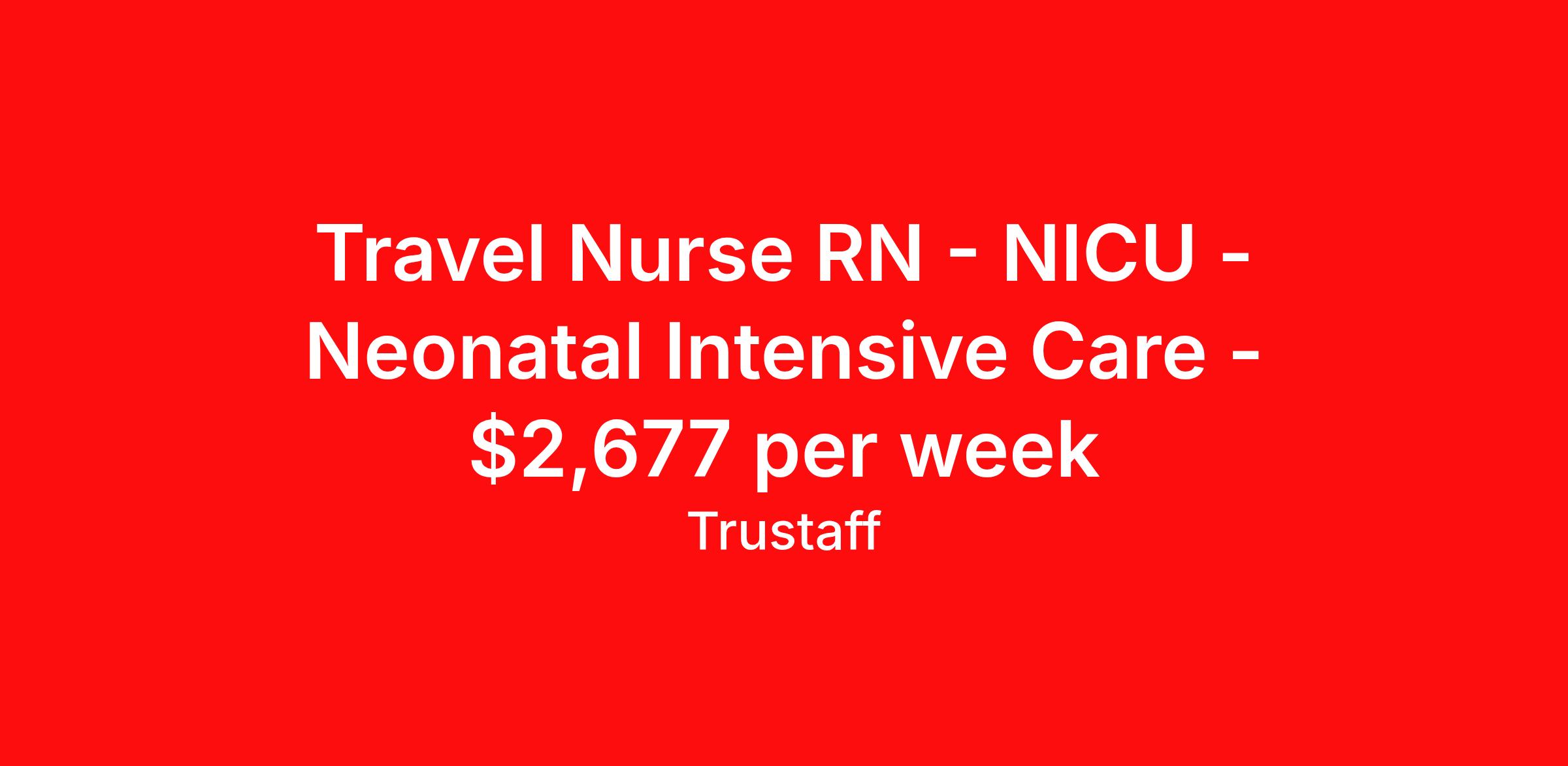 Travel Nurse RN - NICU - Neonatal Intensive Care - $2,677 per week